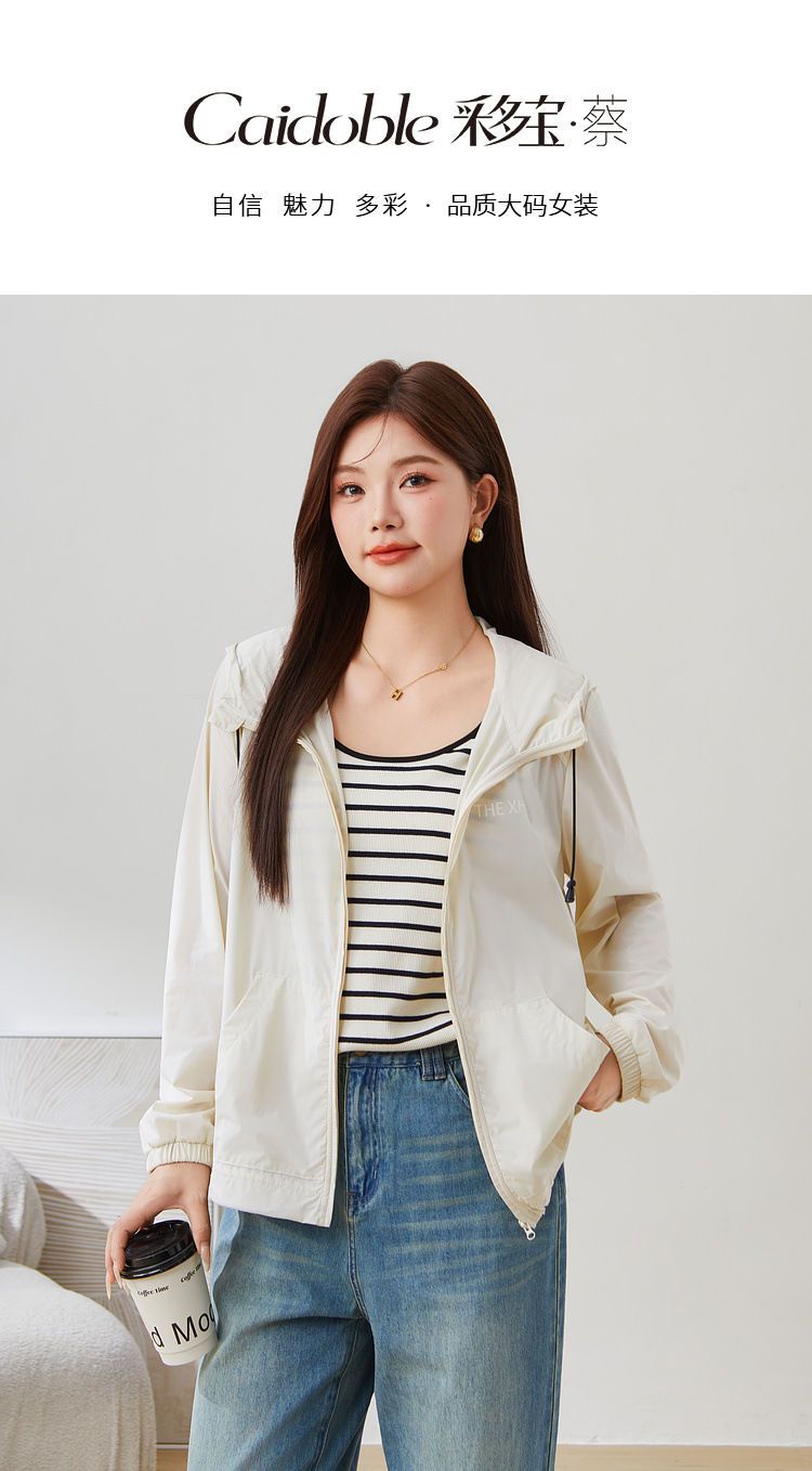 Caiduobao プラスサイズの女性のファット mm2025 夏の新 UPF50 + ブラックテクノロジー日焼け止めジャケット EXW5356N