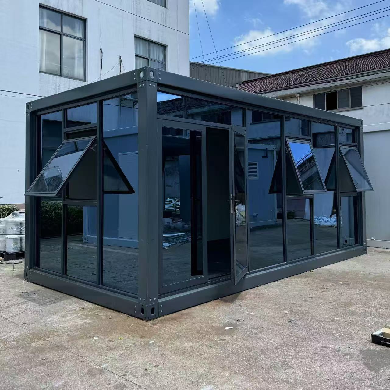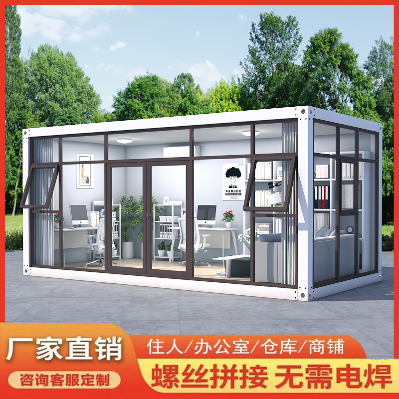 コンテナモバイルオフィス、取り外し可能なプレハブハウス、強化ガラス一体型ハウス、カラースチールプレートコンビネーションハウス