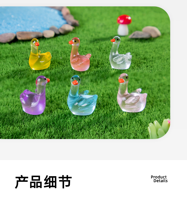 カラー夜光アヒルdiy樹脂アクセサリー微景観小置物ミニチュア小動物コケ造景