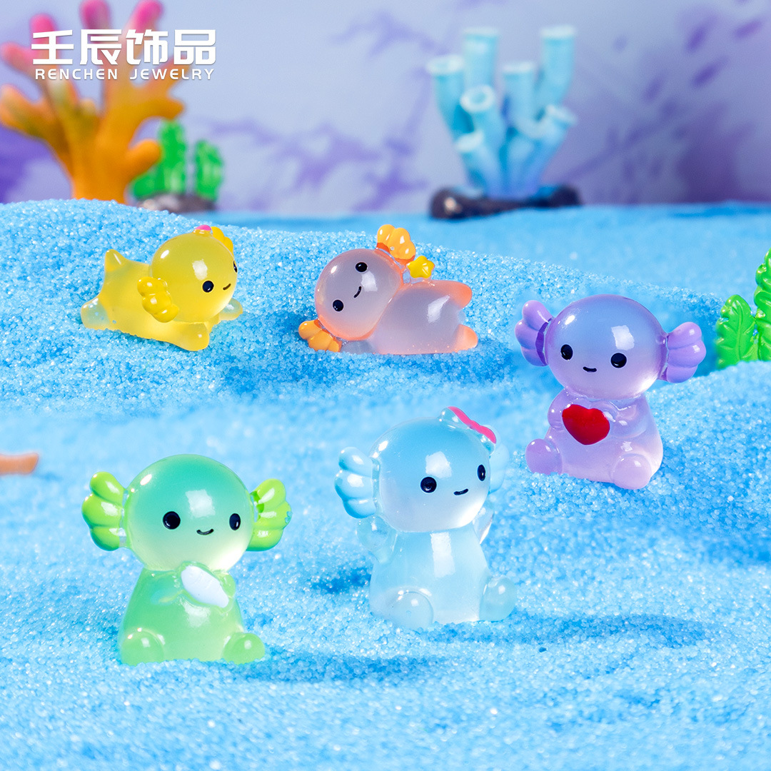 跨境热销彩色海洋动物夜光蝾螈diy树脂小配件工艺装饰车载小摆件