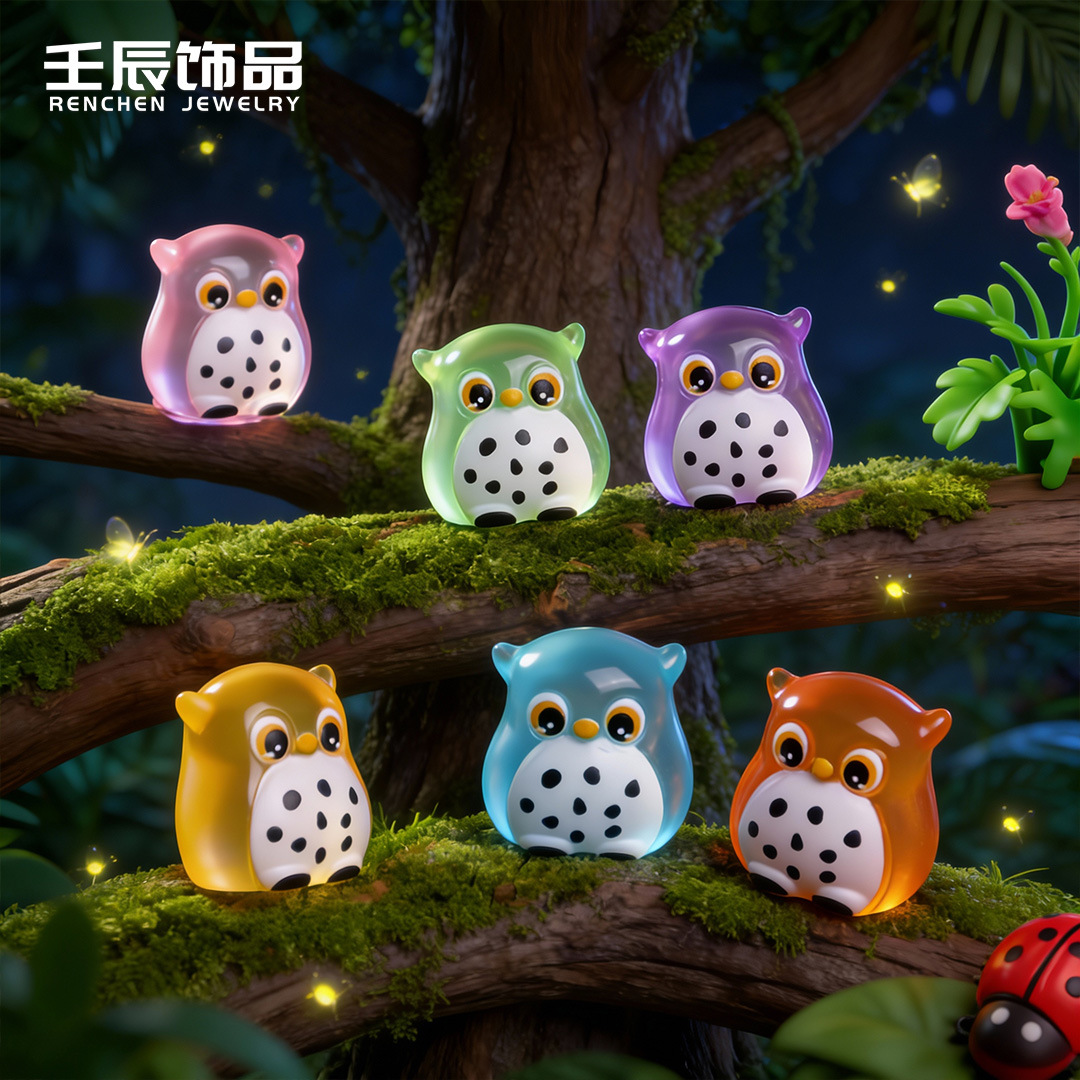 跨境热销夜光猫头鹰萌粒小动物diy树脂工艺小配件桌面装饰小摆件