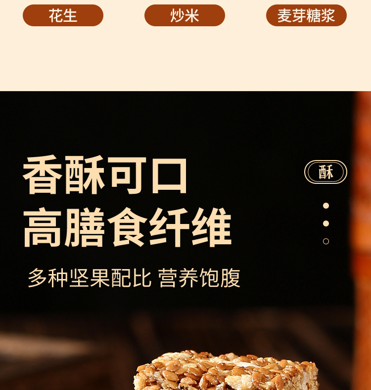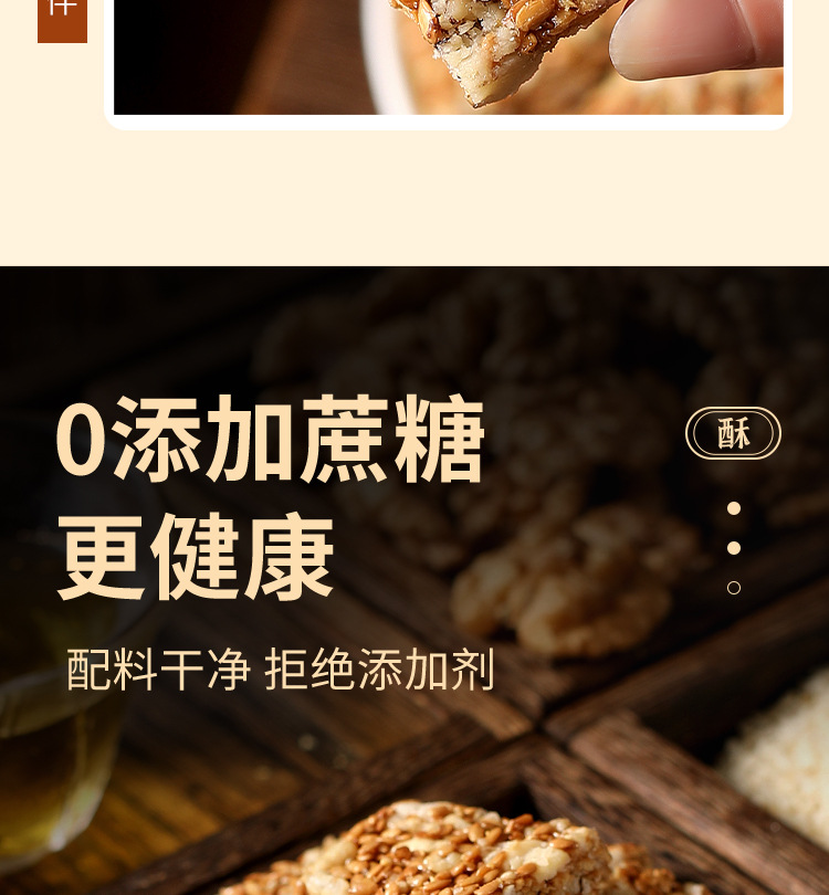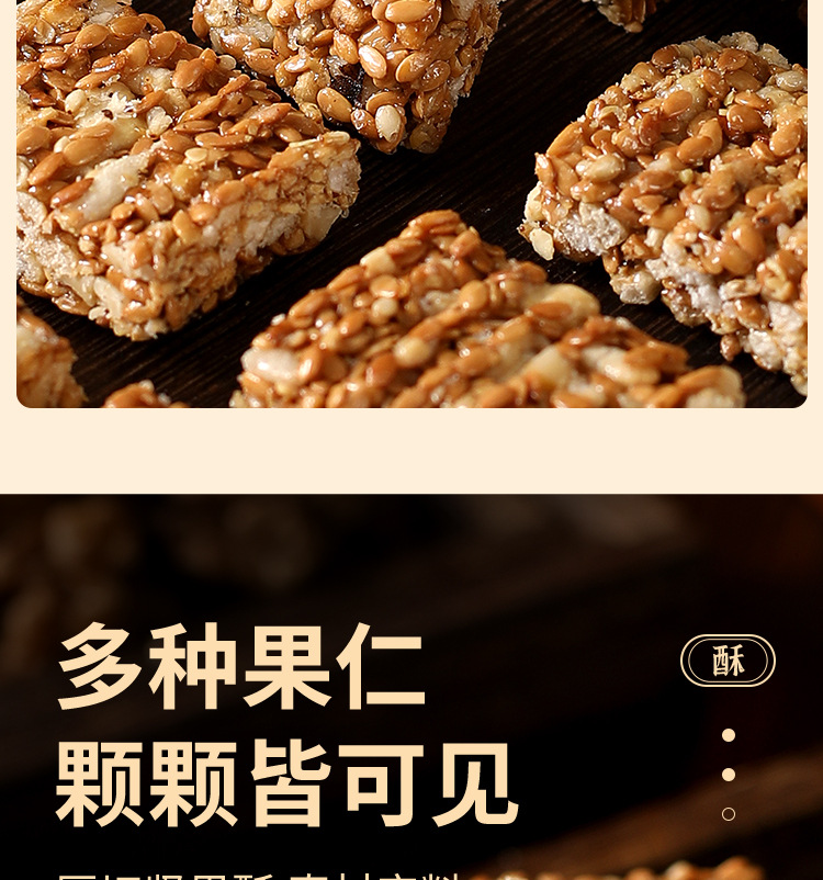 【食补滋养】亚麻籽核桃酥无蔗糖芝麻坚果花生酥滋补健康糕点零食