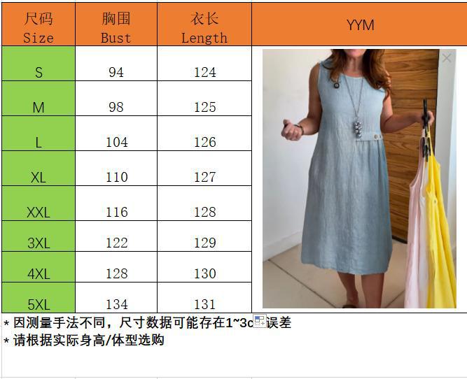 アマゾン独立駅wish2025夏欧米ボタンポケットノースリーブ丸襟女装綿麻ワンピース