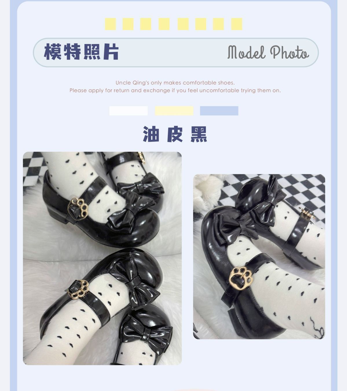 スイートリボンラウンドトゥシューズ猫おじさん靴店オリジナルかわいいロリータloシューズローヒールラウンドトゥロリータシューズ