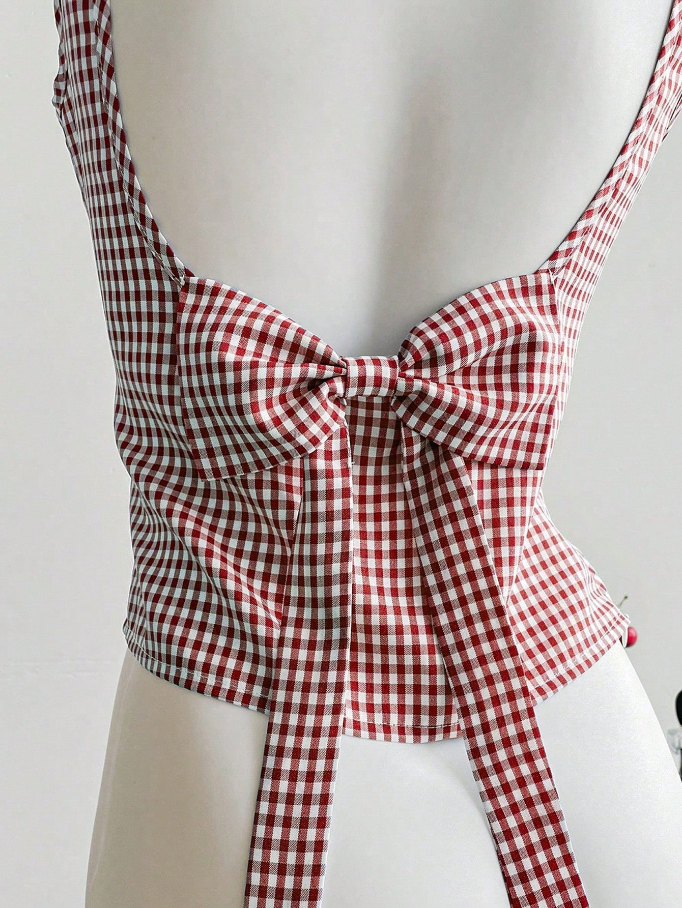 夏の新しい女性の無地ホルターネックノースリーブバックレスリボンスタック装飾ステッチニッチレースアップトップ