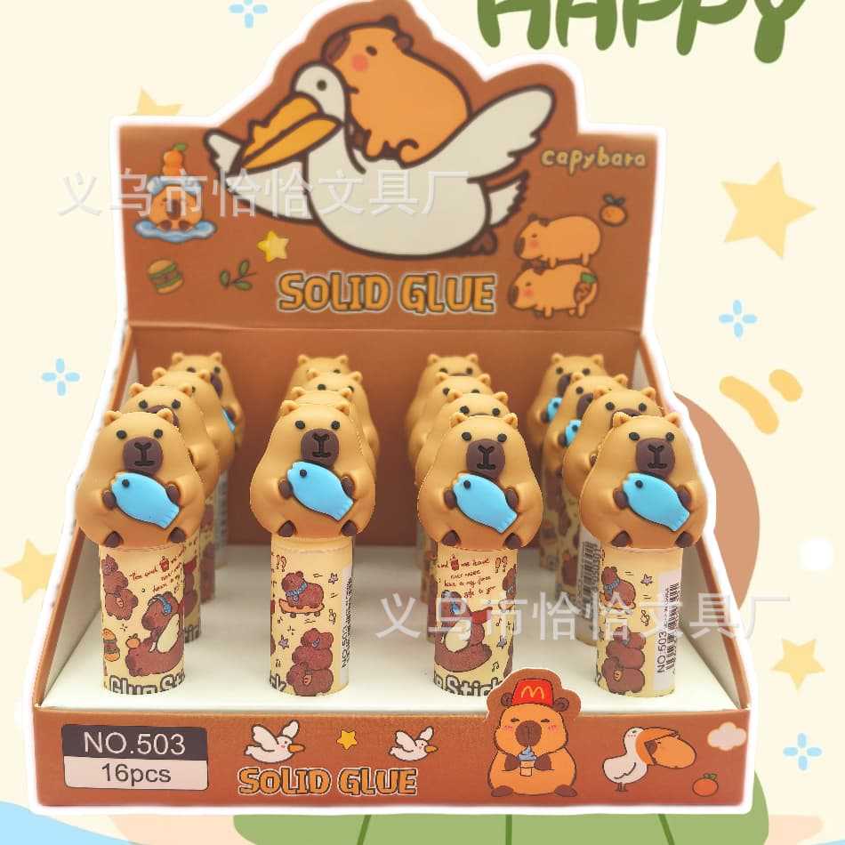 卡皮巴拉软胶固体胶棒整盒装水豚胶棒卡通胶棒固体胶学生文具礼品