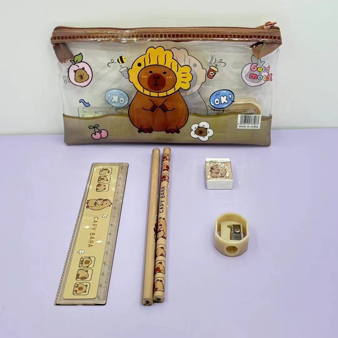 新款卡通可爱创意卡皮巴拉多款全套文具套装铅笔尺子套装用品