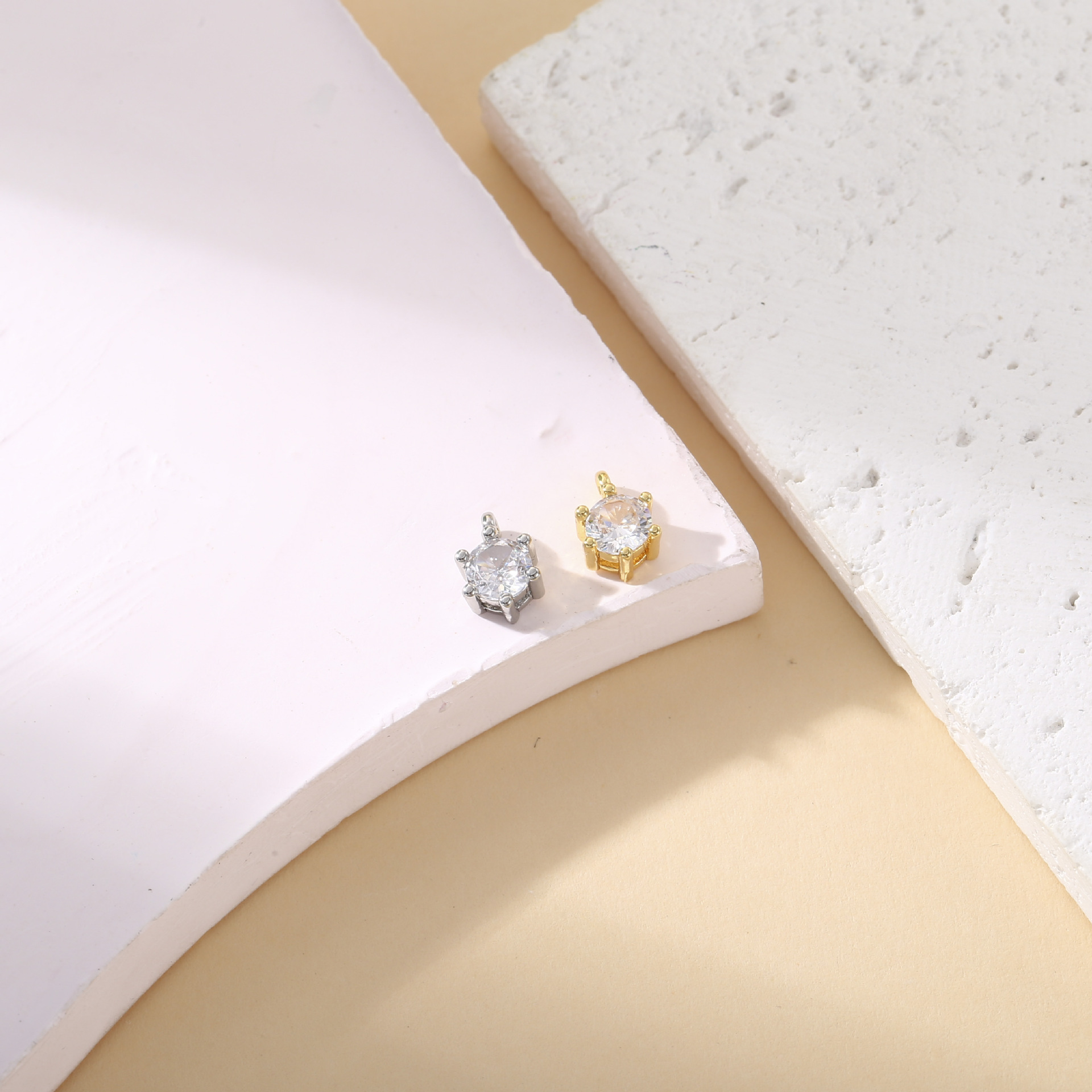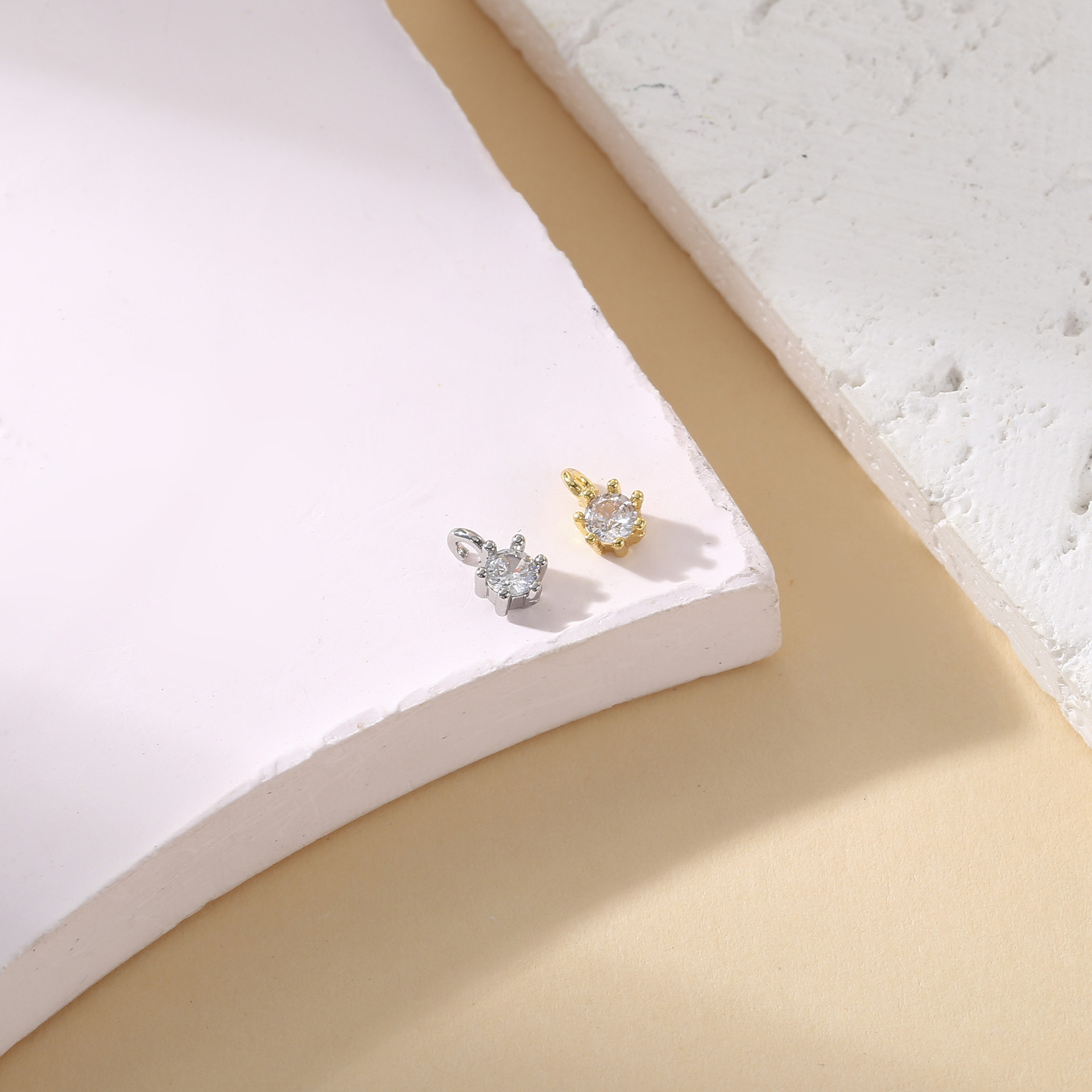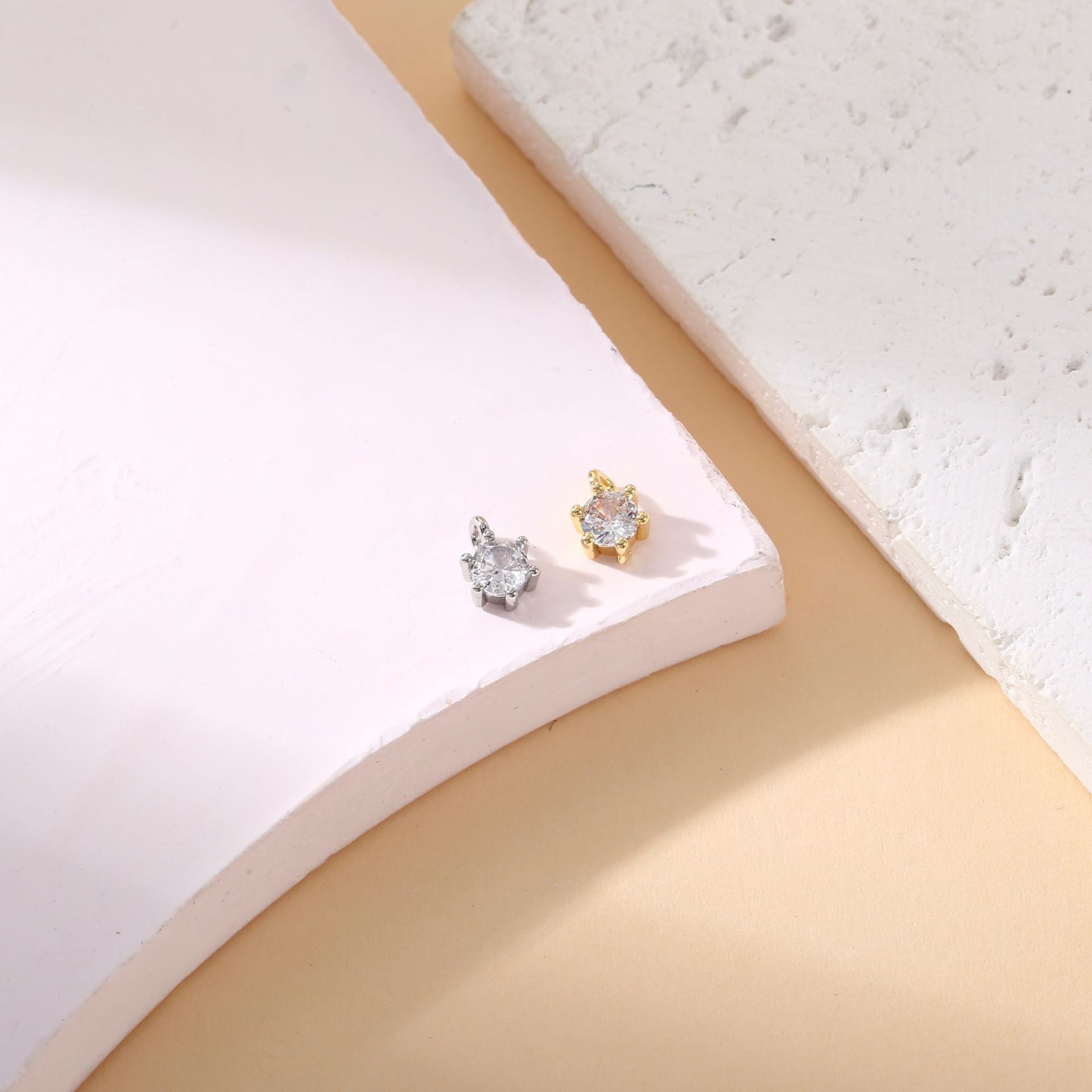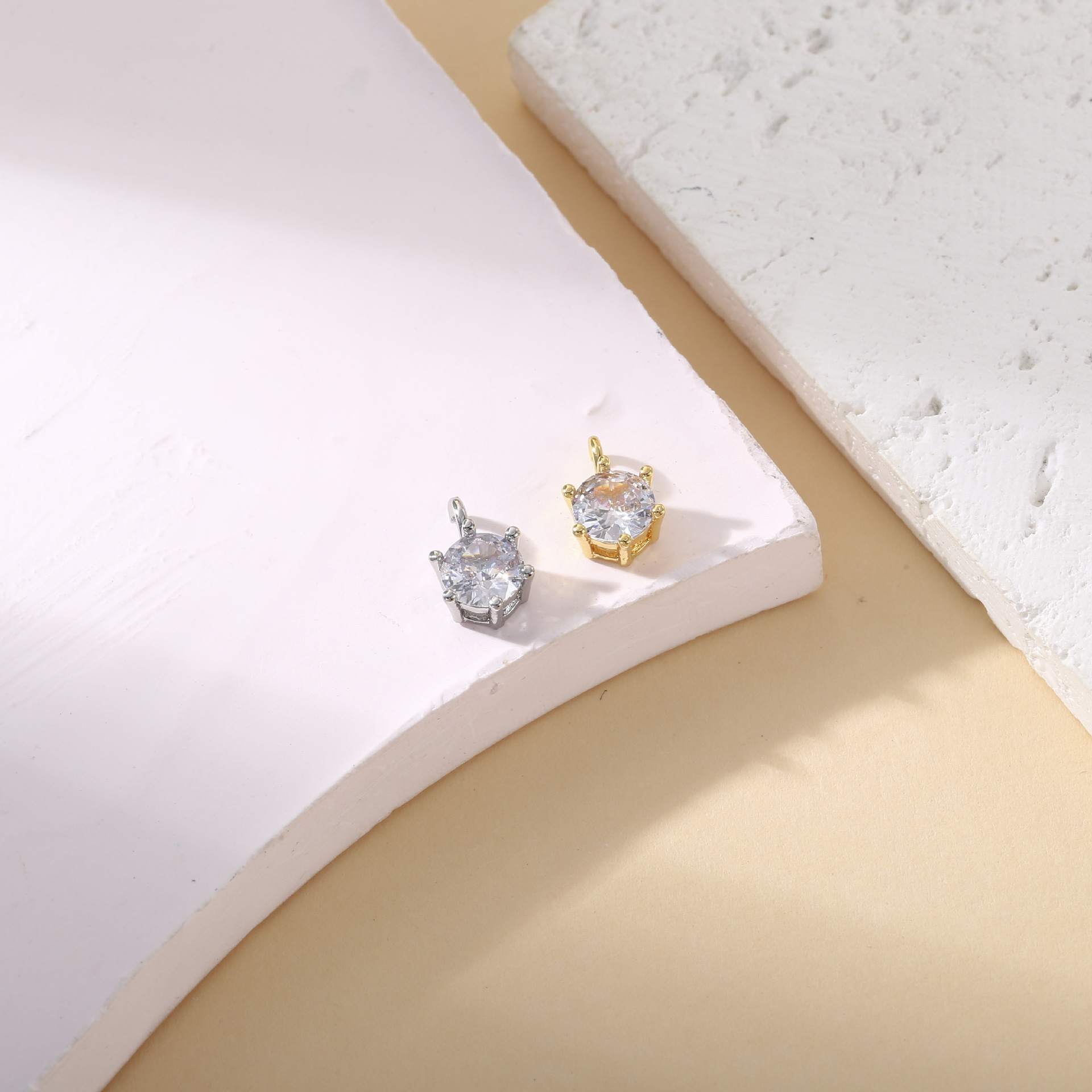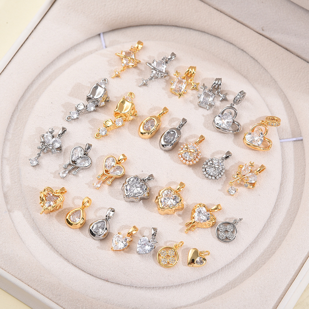 銅メッキ 18 k リアルゴールド象嵌ジルコン 4 爪 6 爪小さなペンダント DIY アクセサリーブレスレットイヤリングジュエリーアクセサリー材料