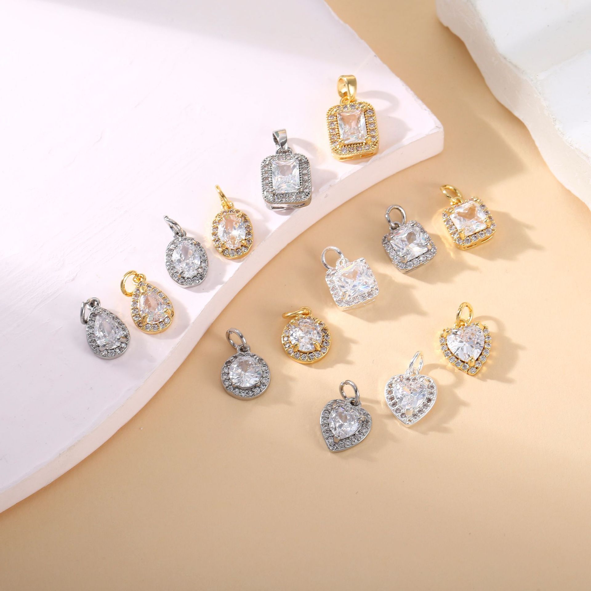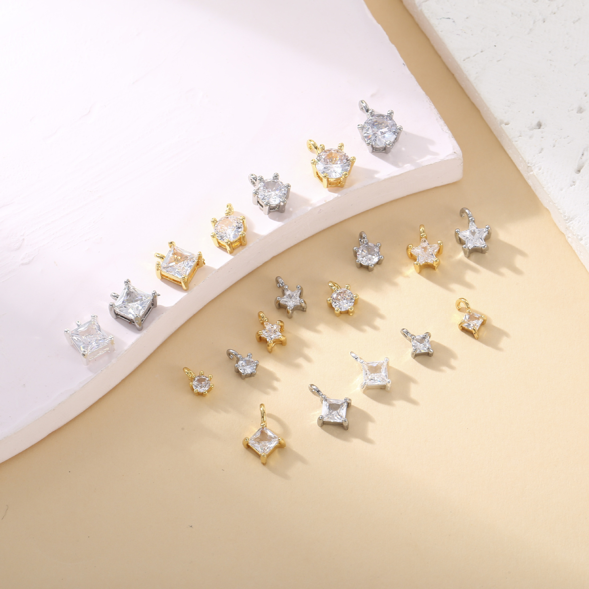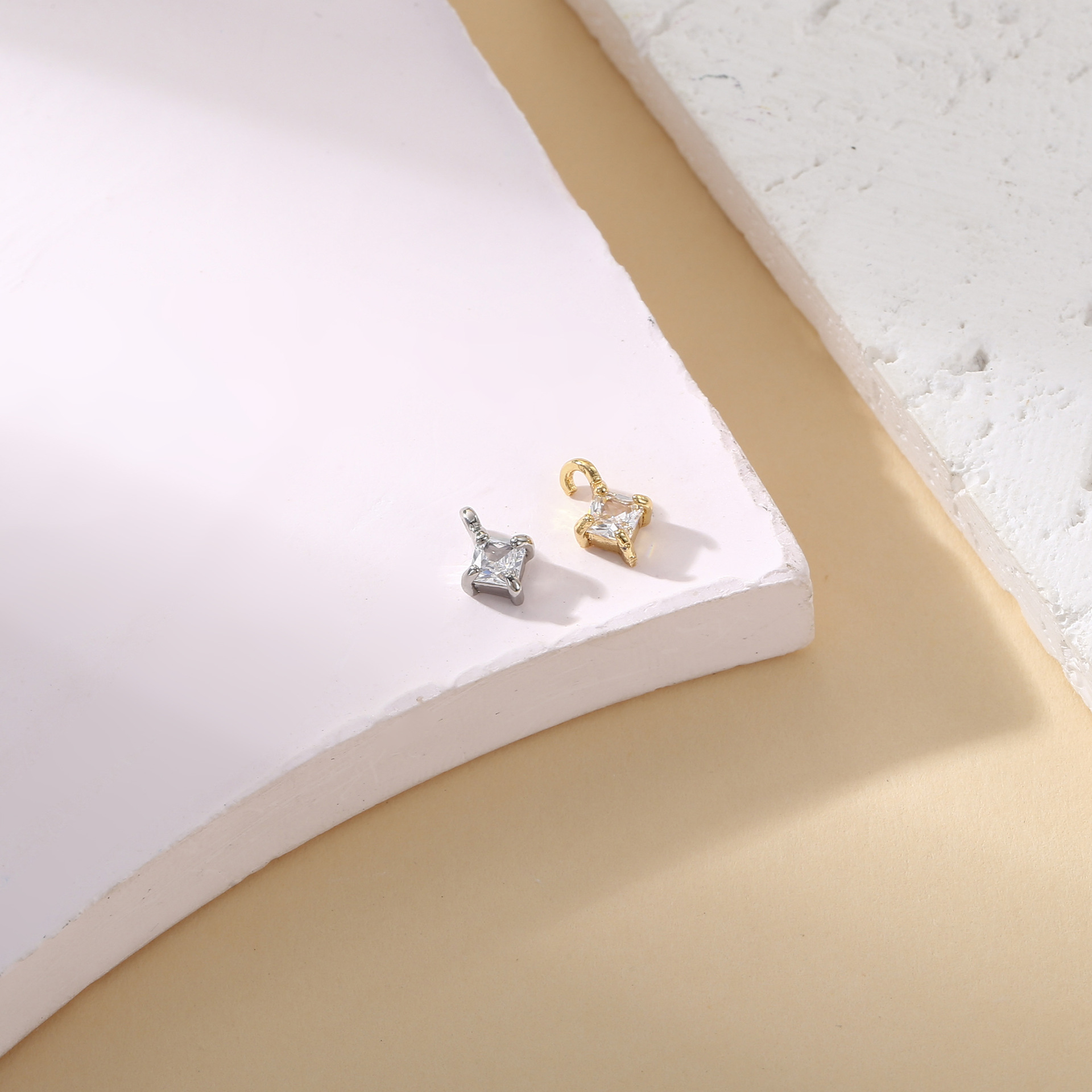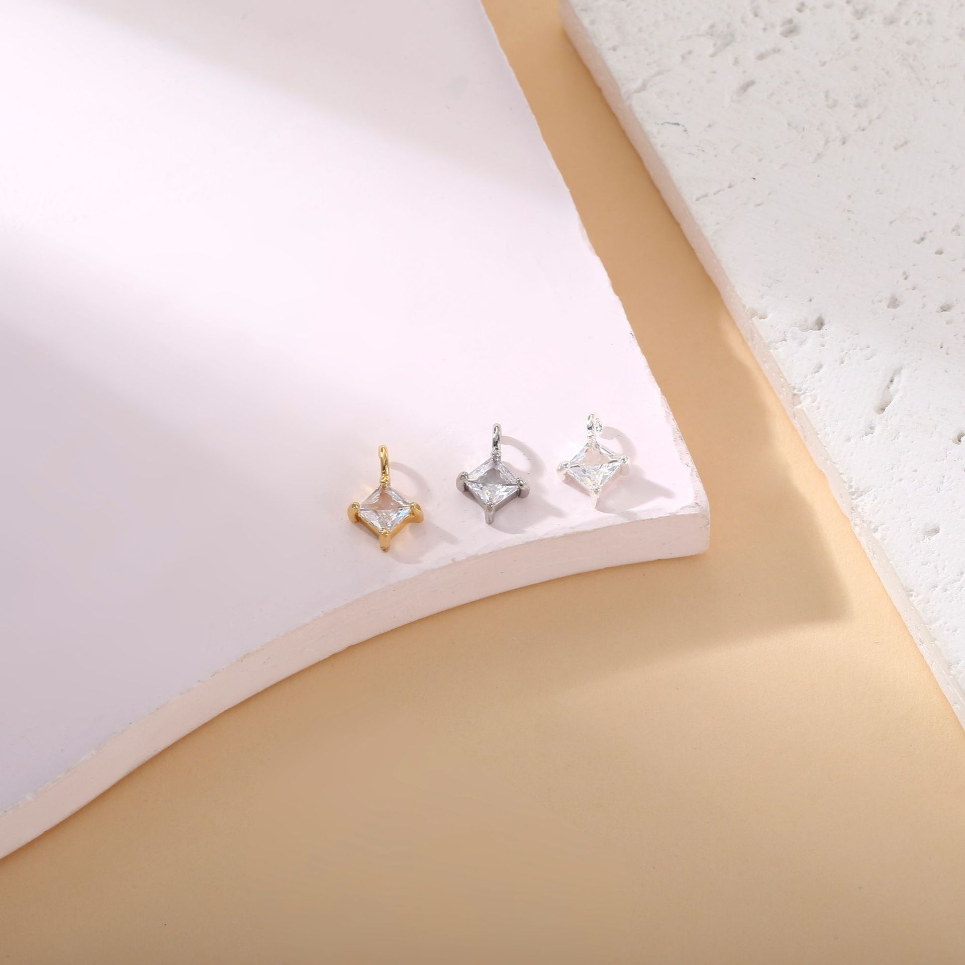 銅メッキ 18 k リアルゴールド象嵌ジルコン 4 爪 6 爪小さなペンダント DIY アクセサリーブレスレットイヤリングジュエリーアクセサリー材料