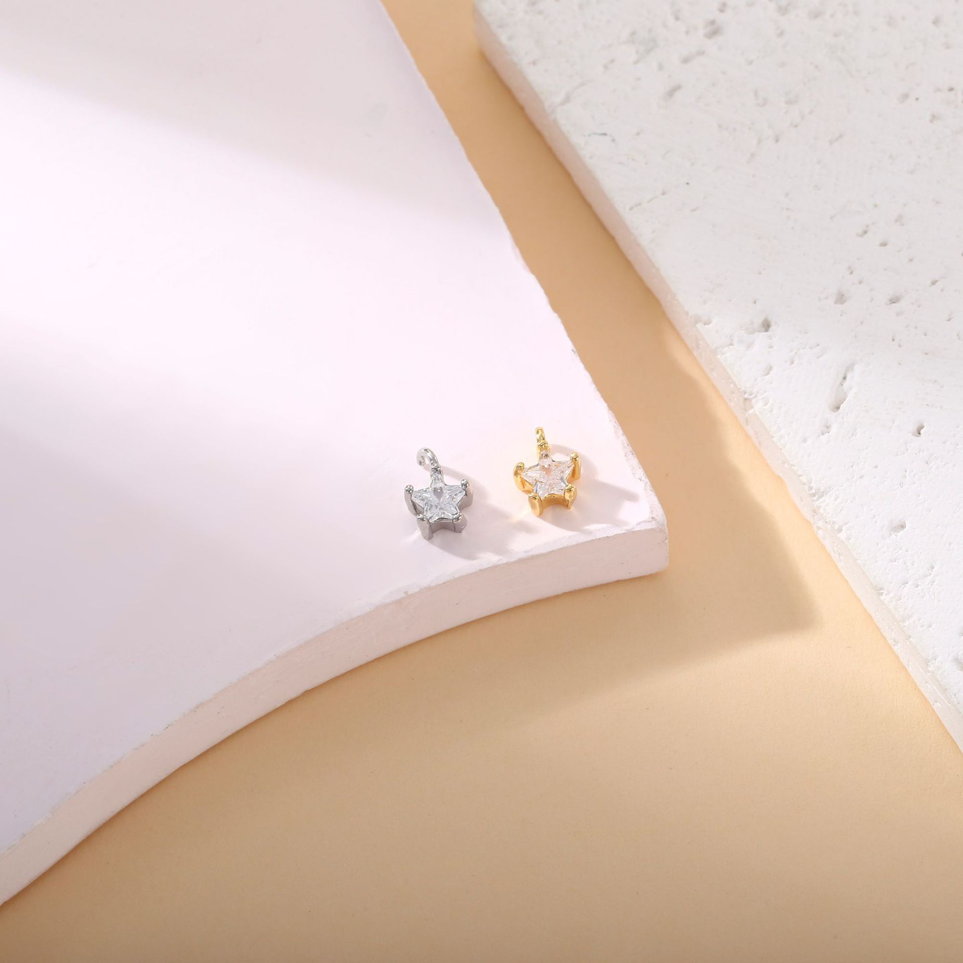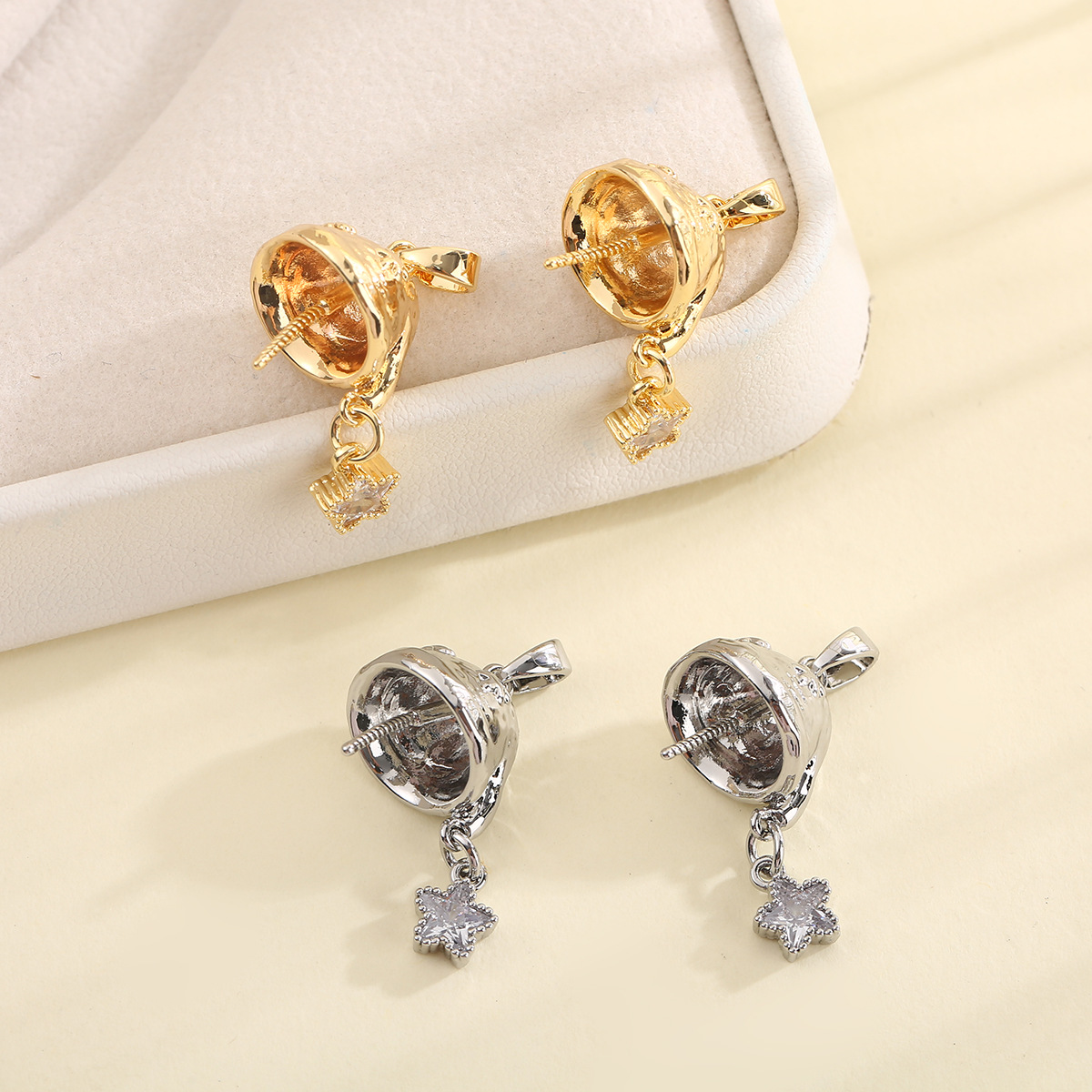 DIY珍珠配件微镶锆石星星铜镀18k金吊坠空托时尚可爱独特设计精致