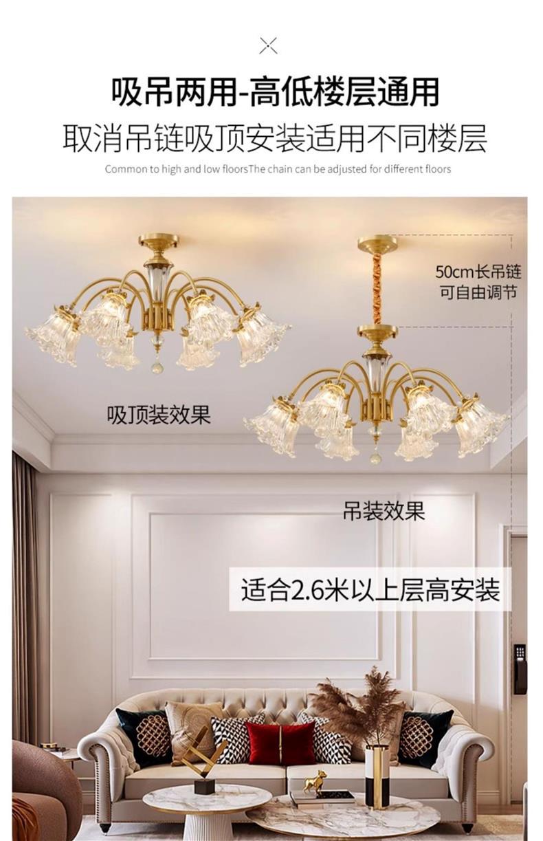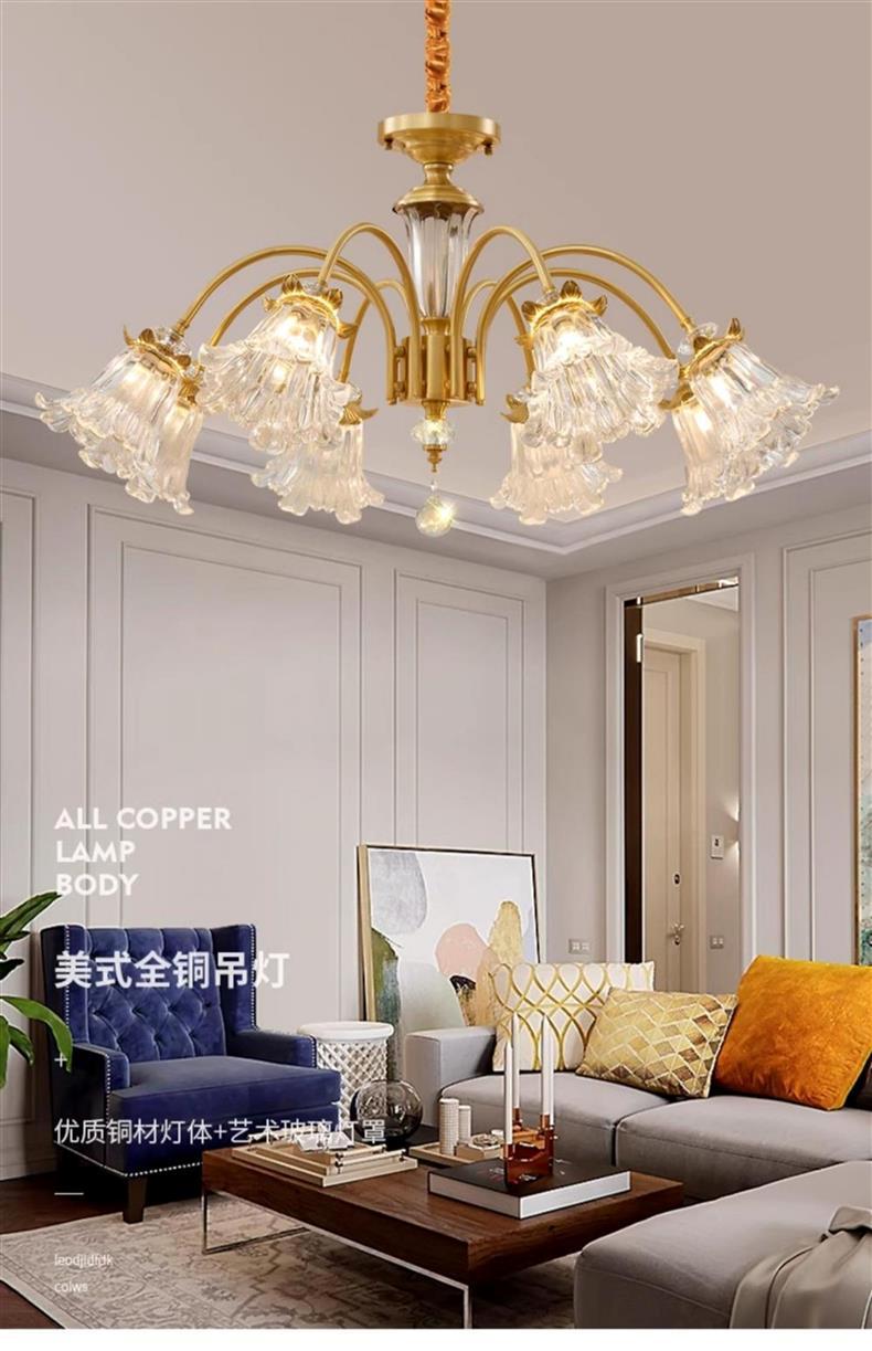 全銅アメリカンリビングルームシャンデリアリビングルームランプシンプルモダン照明寝室ランプライト高級レストラン雰囲気ランプ