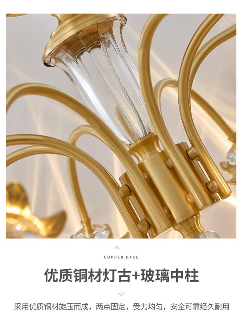アメリカンスタイルの全銅シャンデリアリビングルームランプメインライトクリスタルライト高級ヨーロッパの高級レストランランプ寝室ランプ新しいN235