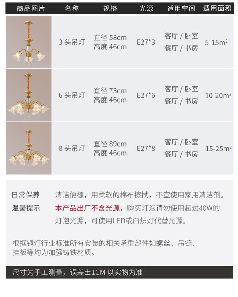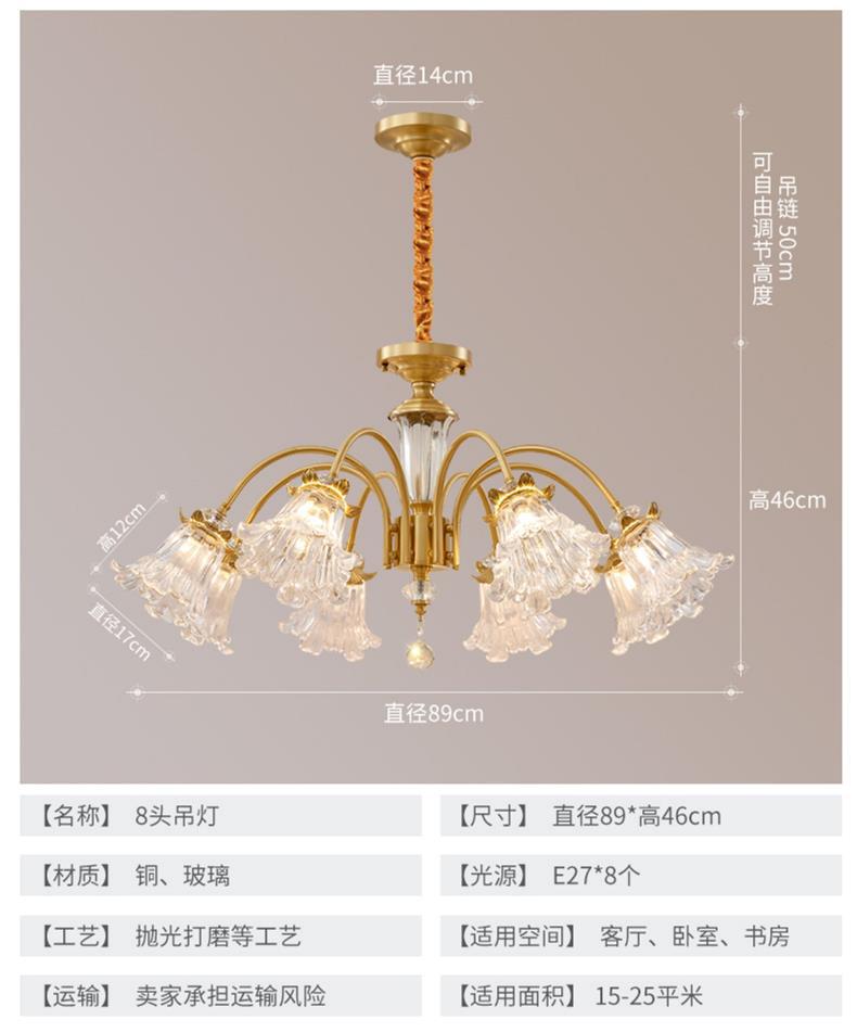 アメリカンオール銅シャンデリアリビングルームライトメインライトシンプルモダンレトロ中世クリームスタイルレストランベッドルームライト66650