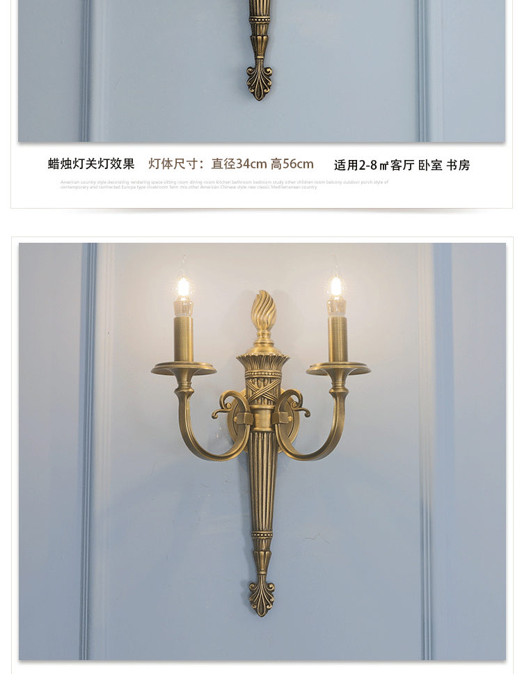 アメリカンハイエンドヴィラリビングルーム背景壁ランプクリエイティブヨーロピアンスタイル暖炉階段寝室ベッドサイドロングフル銅壁ランプ