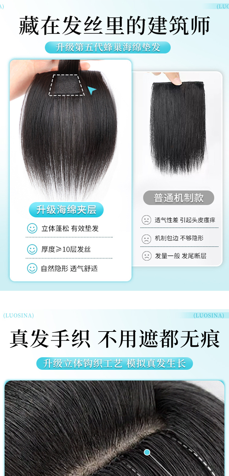 *假发均是手工制作,不同批次产品可能会有些许差异,无法避免但不会影响佩戴,完美主义谨慎选择。*