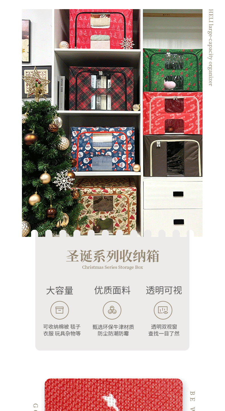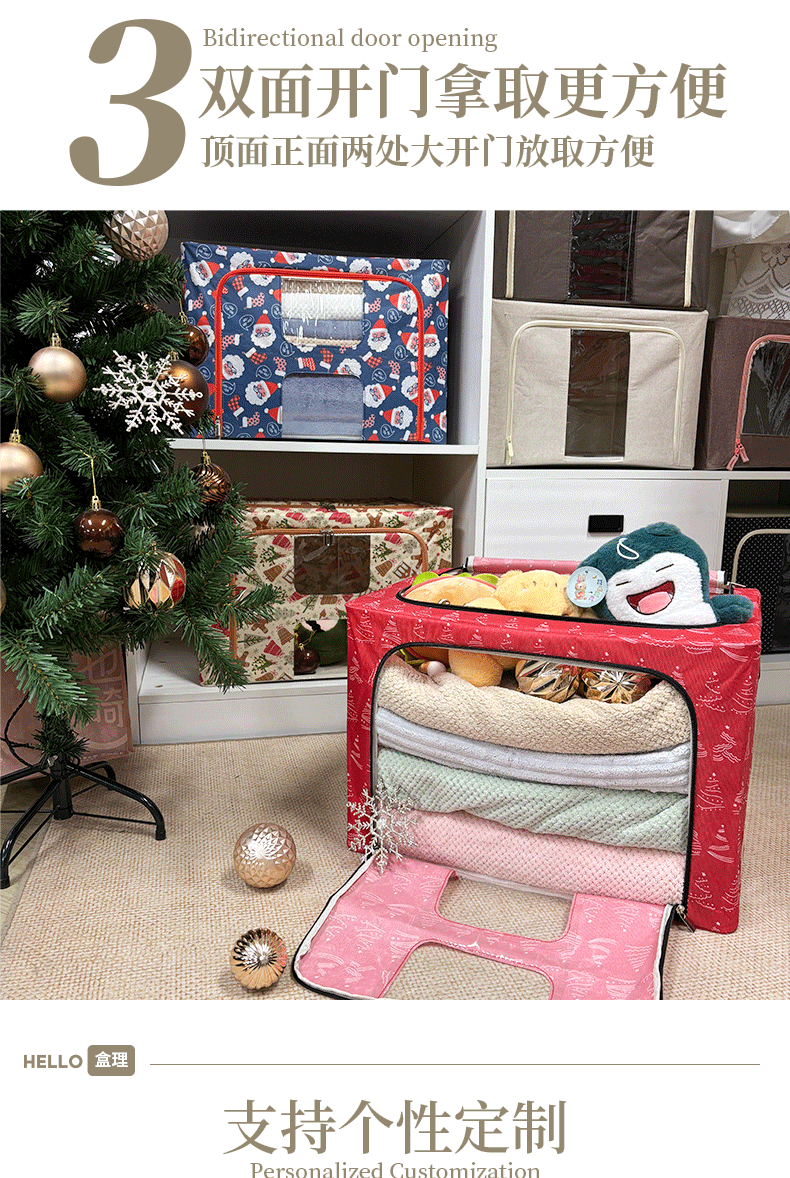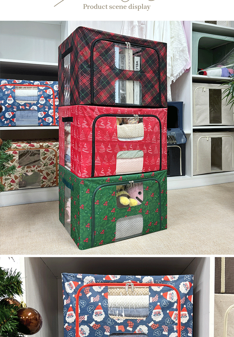 注文生産 | H ウィンドウ クリスマステーマ オックスフォード布 衣類収納ボックス キルト 衣類 オックスフォード布 整理ボックス