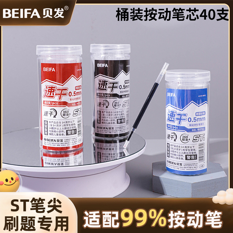 贝发大桶装ST速干按动笔芯0.5mm黑色水笔中性笔笔芯刷题专用笔芯