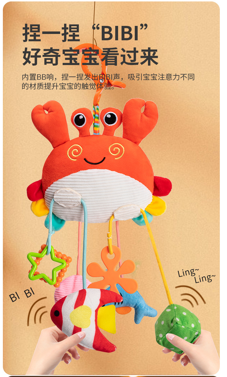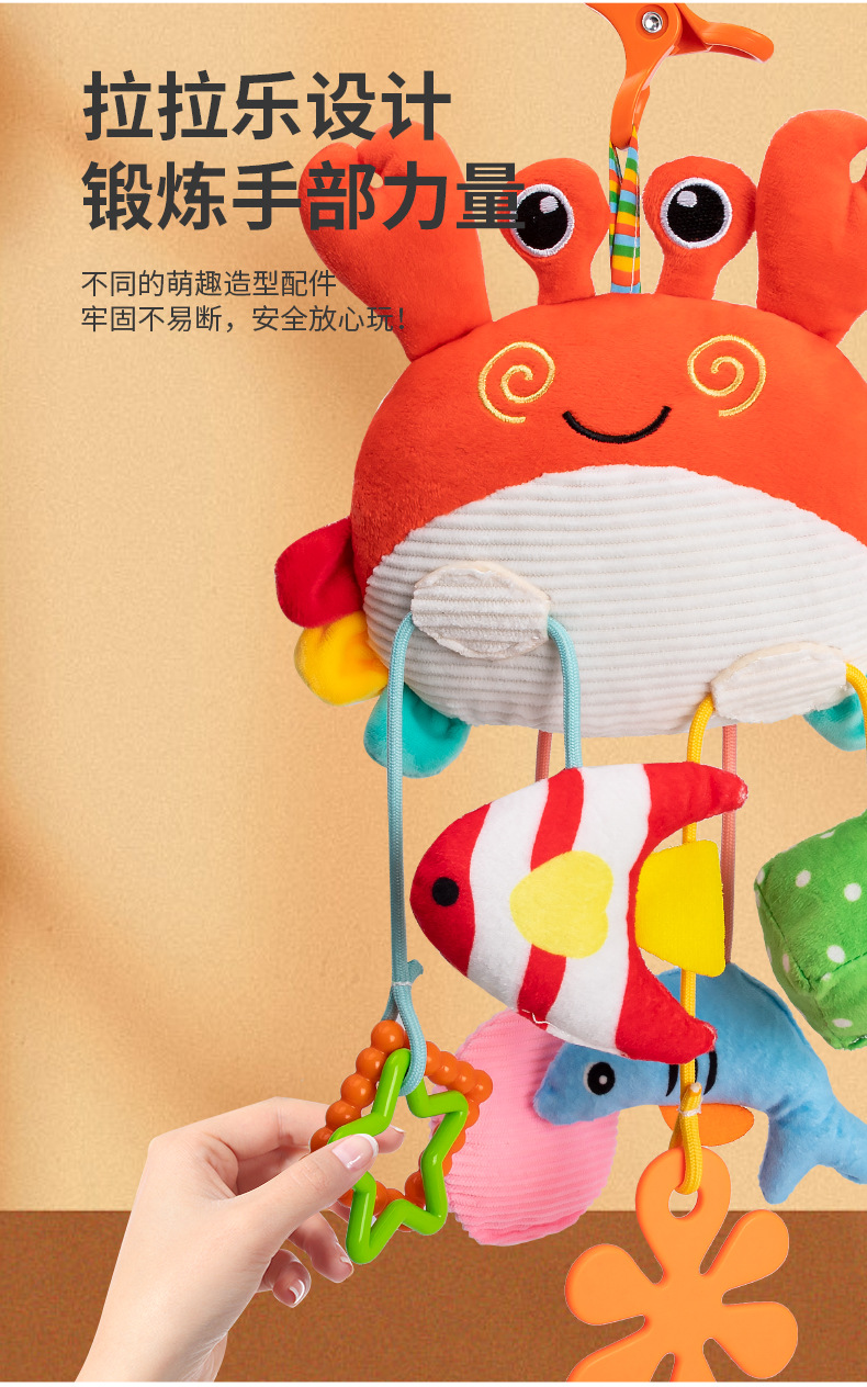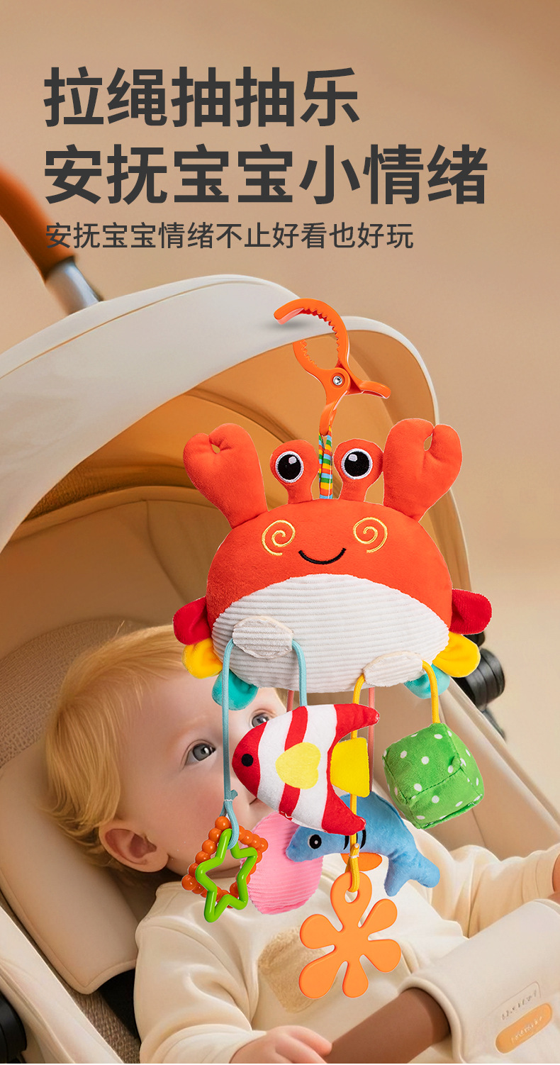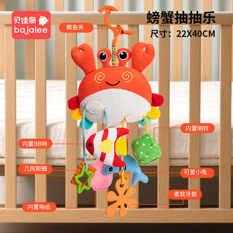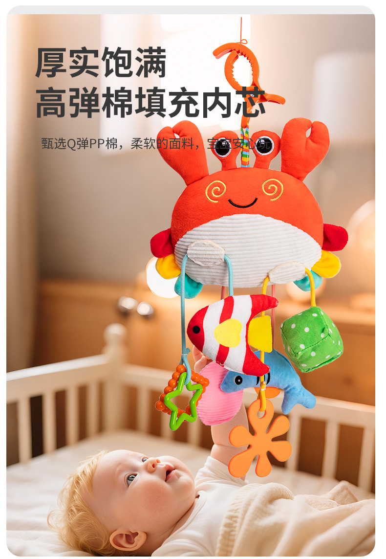 热销婴儿玩具床铃螃蟹抽抽乐床挂摇铃安抚手推车圣诞挂件代发