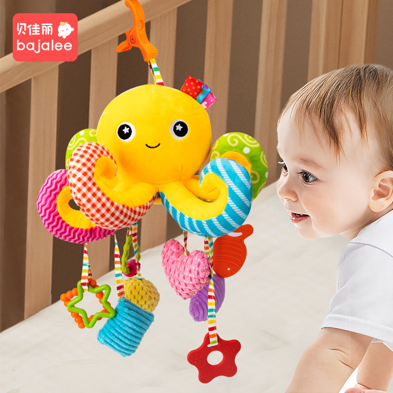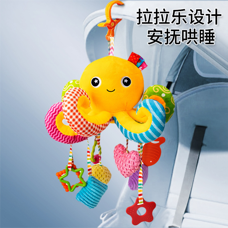 婴儿玩具推车挂件0-1岁宝宝安全座椅摇铃床头可挂八爪鱼抽拉玩偶