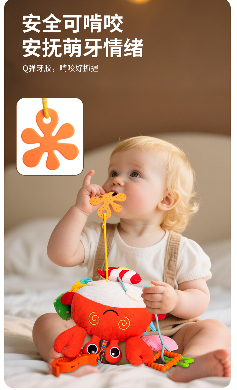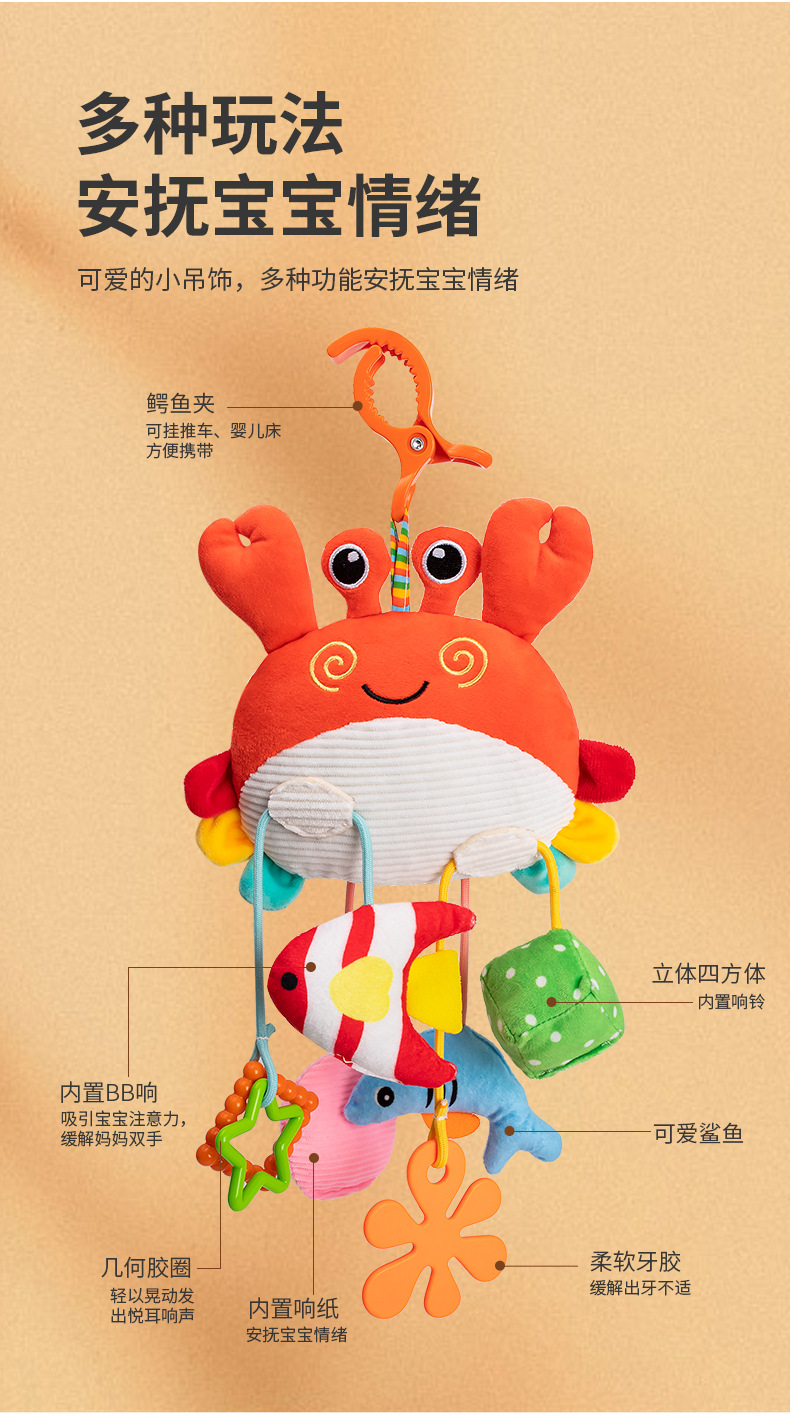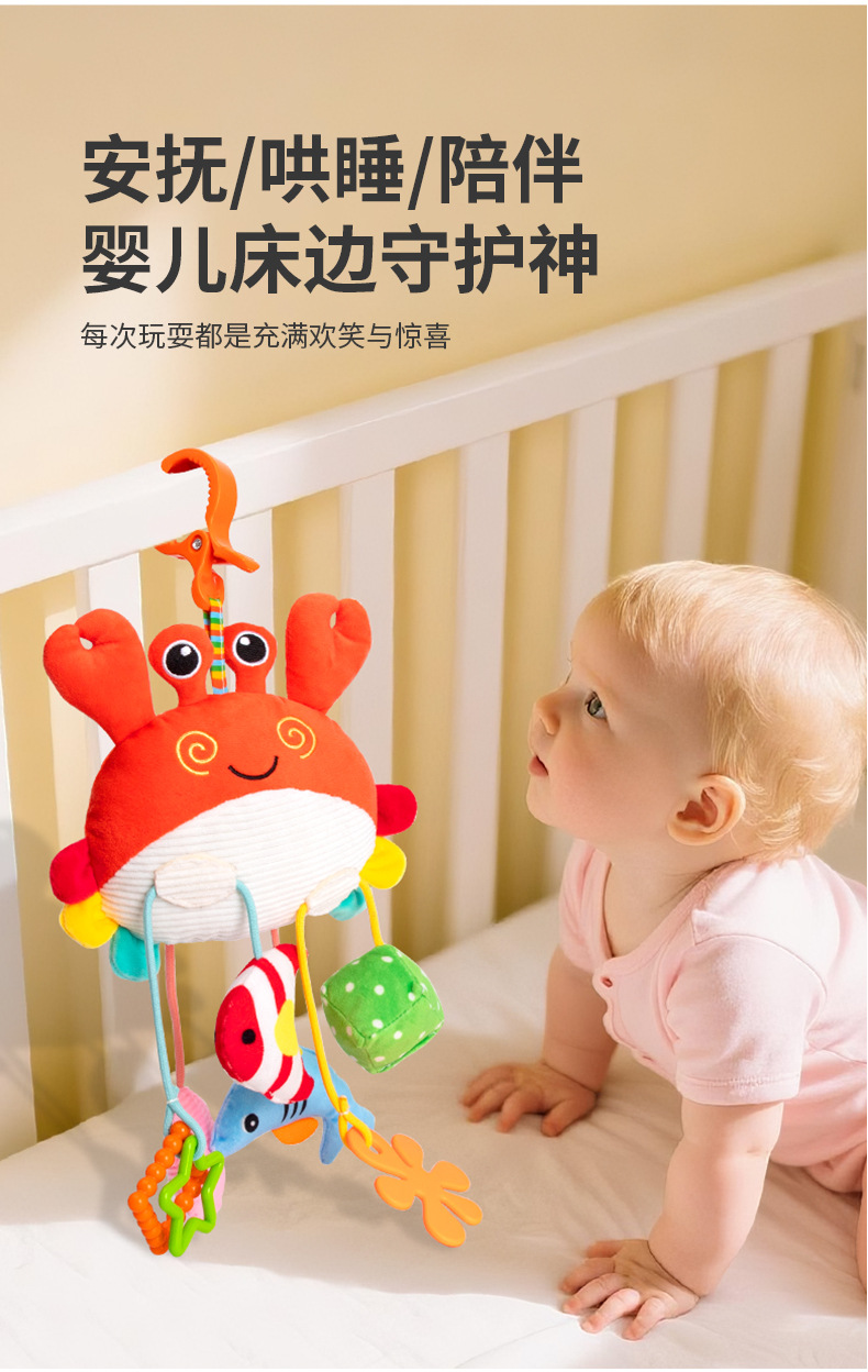 国境を越えた幼児用ベッドサイドベル、布製おもちゃ、赤ちゃん用カニの動物型おもちゃ、ティッシュペーパーを引くと音が鳴るおもちゃ