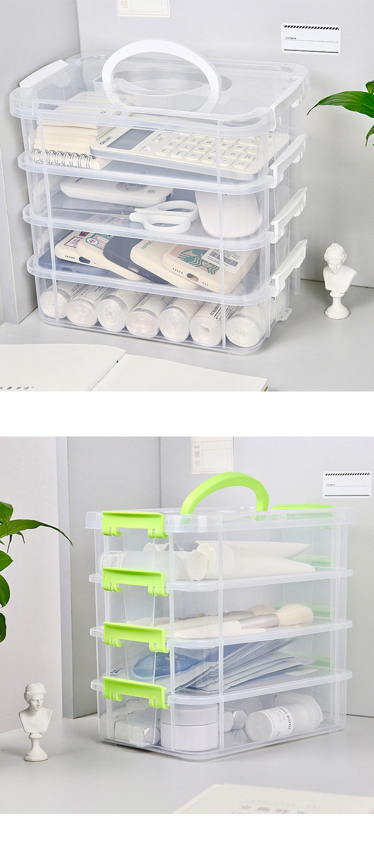 FX3399 4層ポータブル収納ボックス、透明、積み重ね可能、文具、化粧品、おもちゃの引き出し型整理