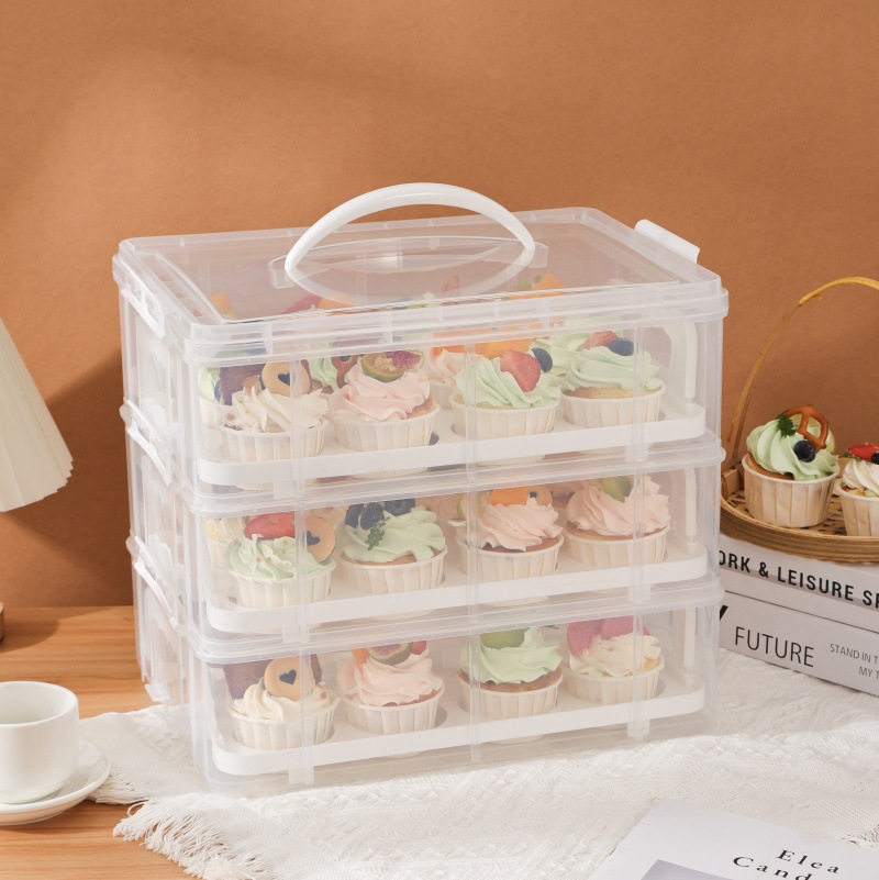 紙コップケーキ包装箱移動デザート台包装収納ボックス透明手提げプラスチック馬芬杯輸送箱
