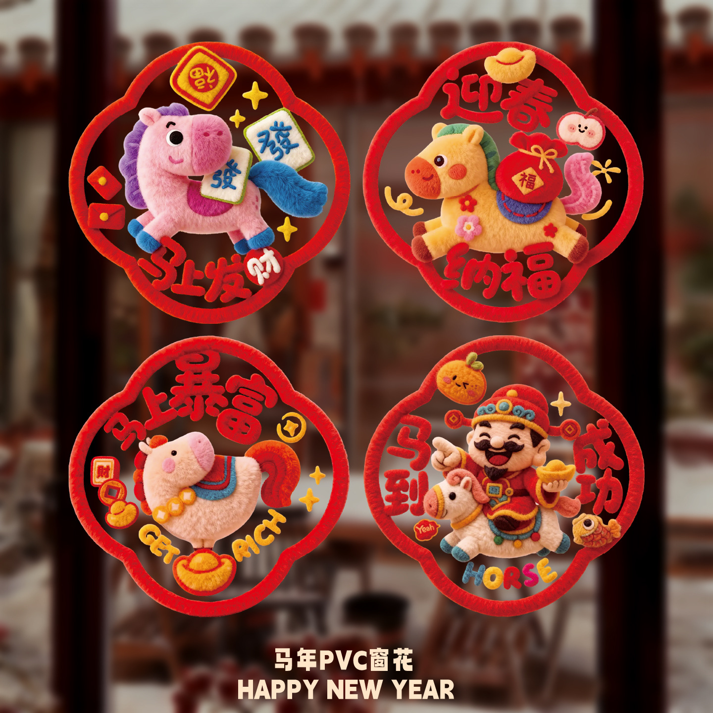 2026马年元旦新款静电贴新年窗花玻璃贴橱窗对贴墙贴过年春节装饰