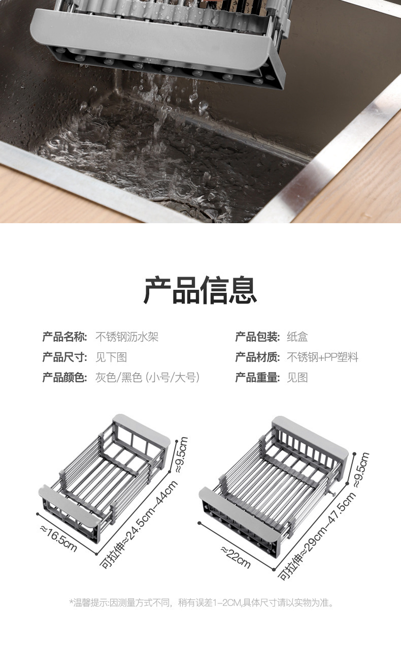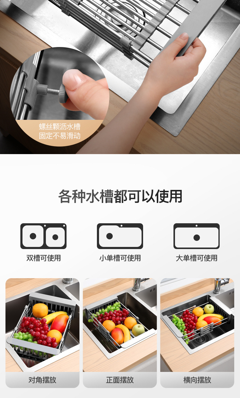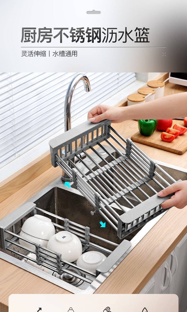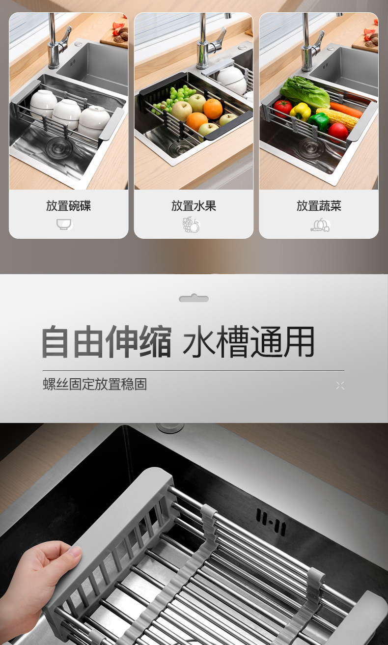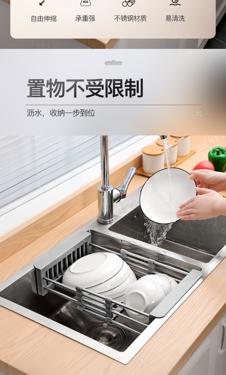 キッチン収納水フィルターラックシンクローラー収納ラックシンク収納ラック折りたたみステンレス鋼伸縮式排水ラック