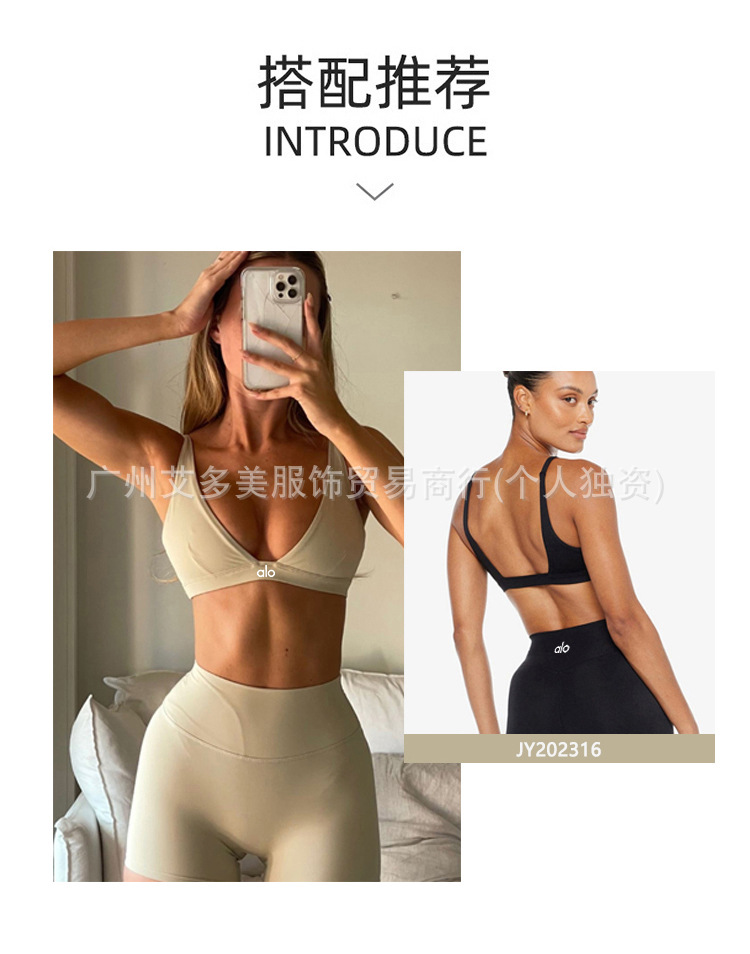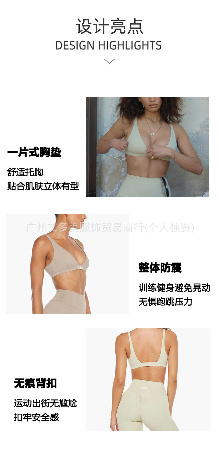 alo透气挂脖美背瑜伽文胸欧美无缝运动内衣女夏防震健身上衣