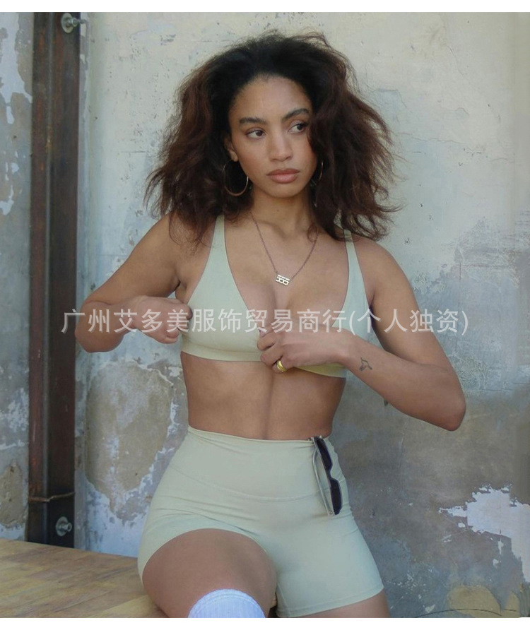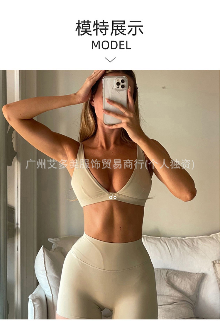 alo欧美磨砂运动瑜伽服套装女高腰提臀短裤防震文胸速干健身套装