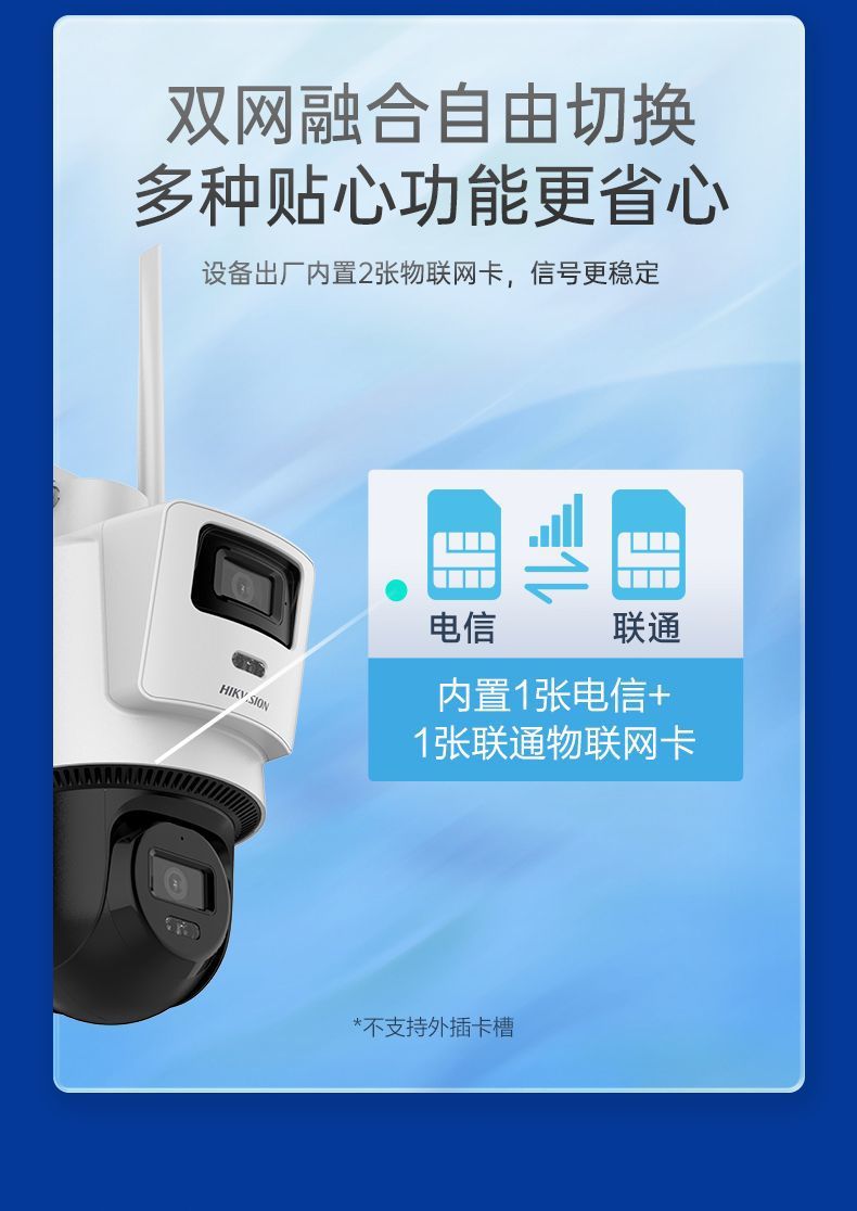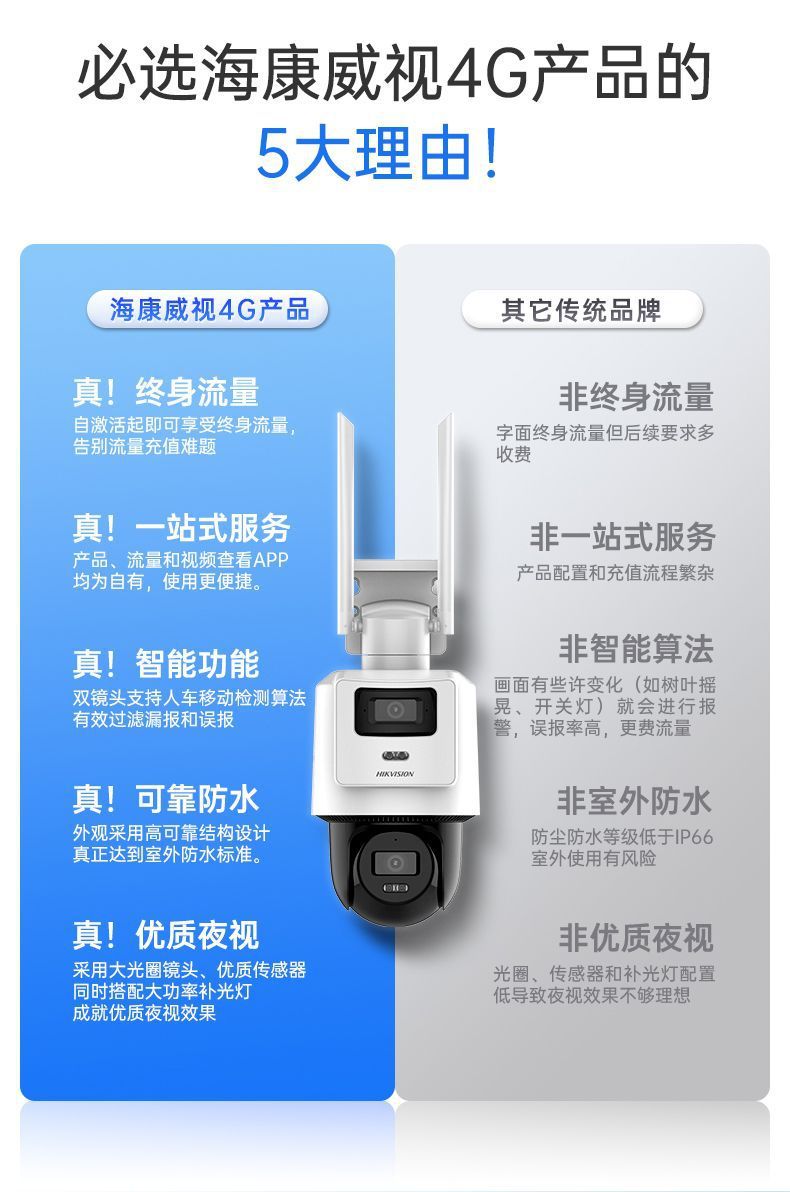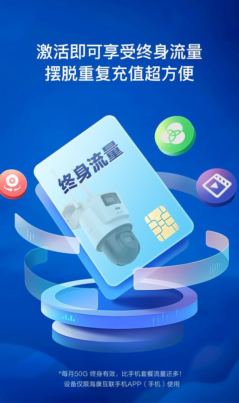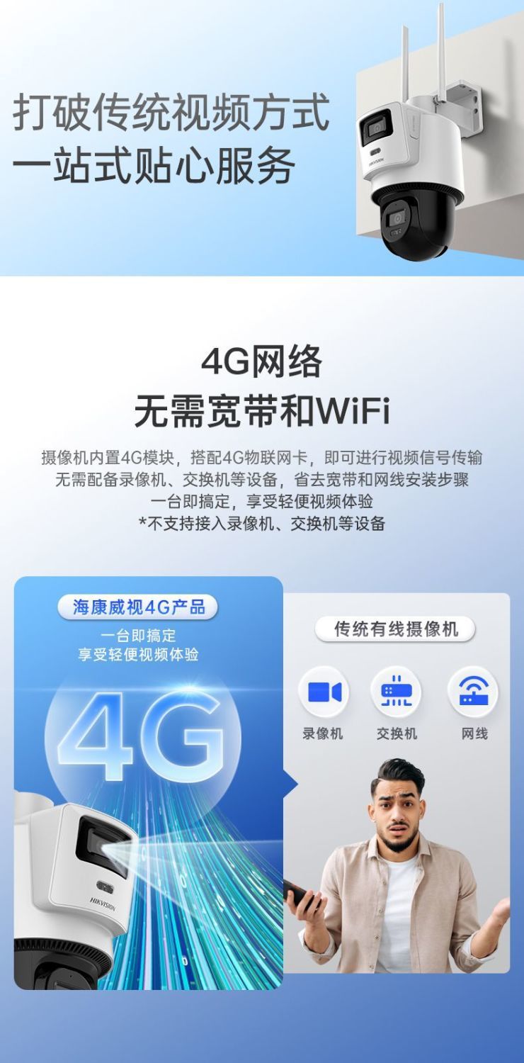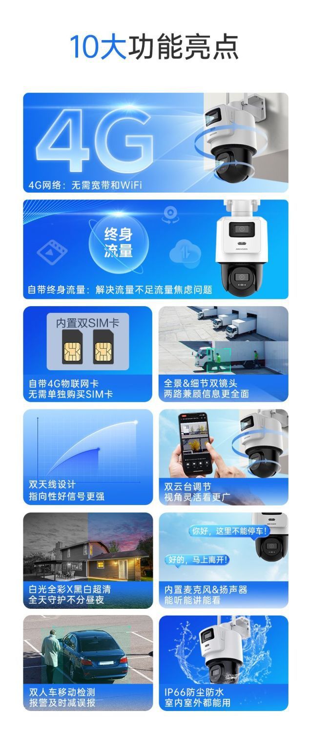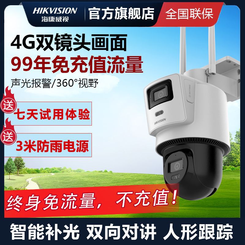 海康威视摄像头免充值4G无网户外高清监控摄影头终身免流量双镜头