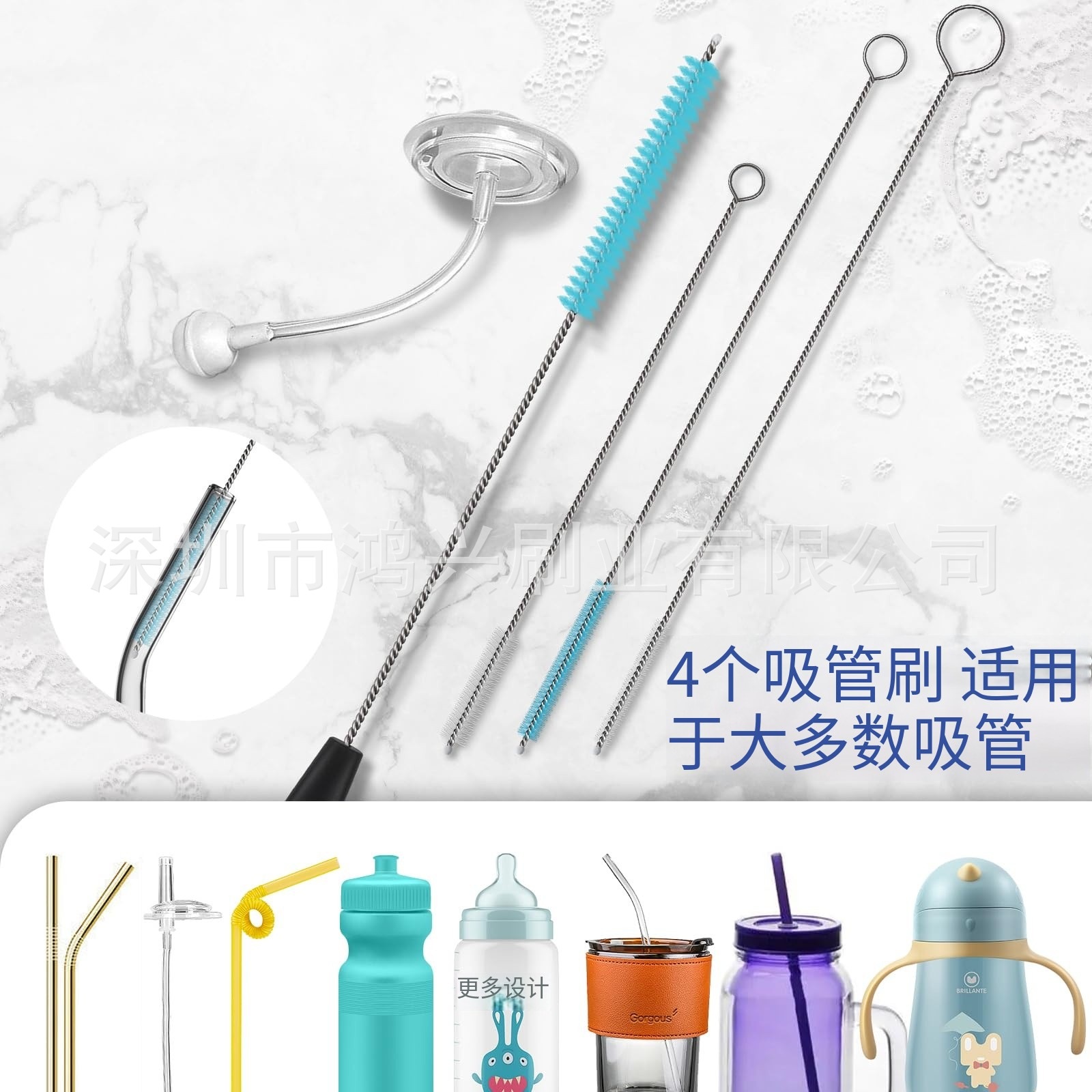 工場直販ステンレスカラーストローブラシ牛乳瓶水カップブラシシリコーンガラス試験管ブラシナイロンクリーニングブラシ