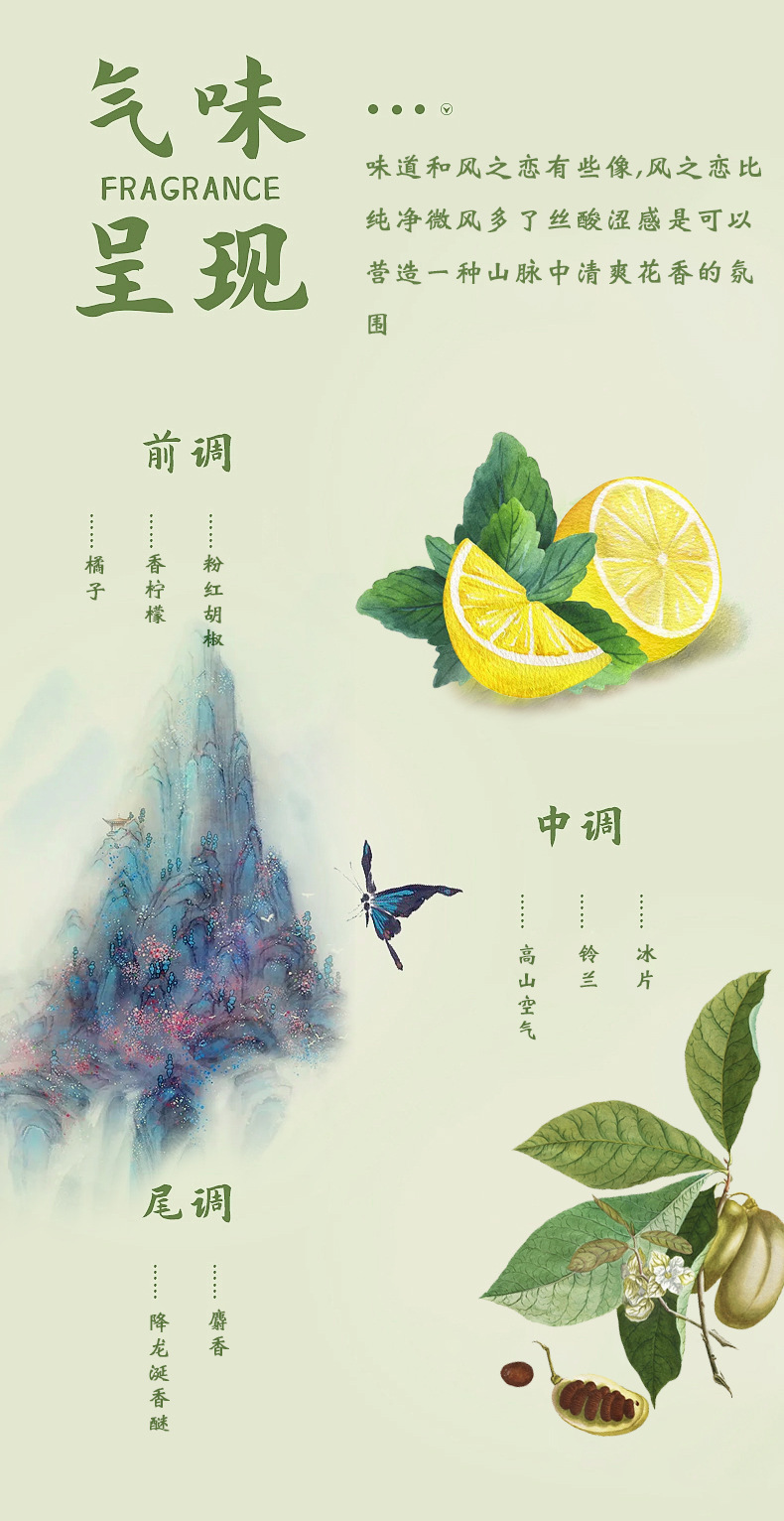 ハミメロン,ムスクの香り,ケルン,ミルク,パチョリ,ベチバー,ミント,スイカ味,ピーチ味,スイカズラ,ぶどう味,バニラ,ライム味,キンモクセイ風味,ジャスミン風味,グレープフルーツ味,柑橘系の風味,クリーミー,ミルク味,蘭の香り,ライラック,クチナシ味,フランキンセンス,松の香り,ベルガモット風味,草の香り,セージ風味,ゼラニウムの香り,アイリスの香り,ヒノキの香り,アンバーグリスの香り,チュベローズ風味,フローラルノート