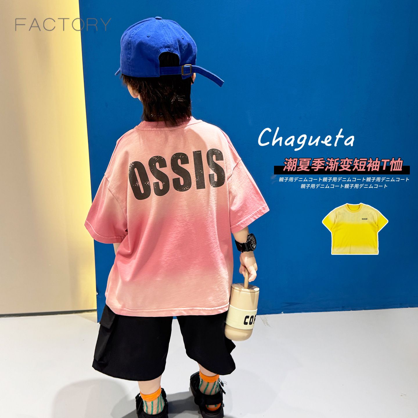 男童渐变短袖夏季2025新款儿童洋气时髦薄款上衣宝宝痞帅宽松T恤4