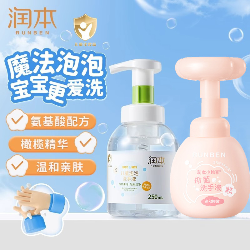 润本儿童洗手液婴幼儿宝宝泡沫型专用按压瓶家用温和清洁植物护手