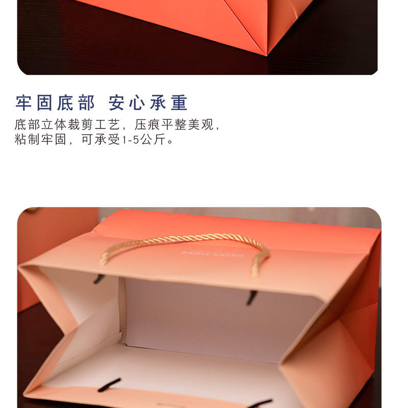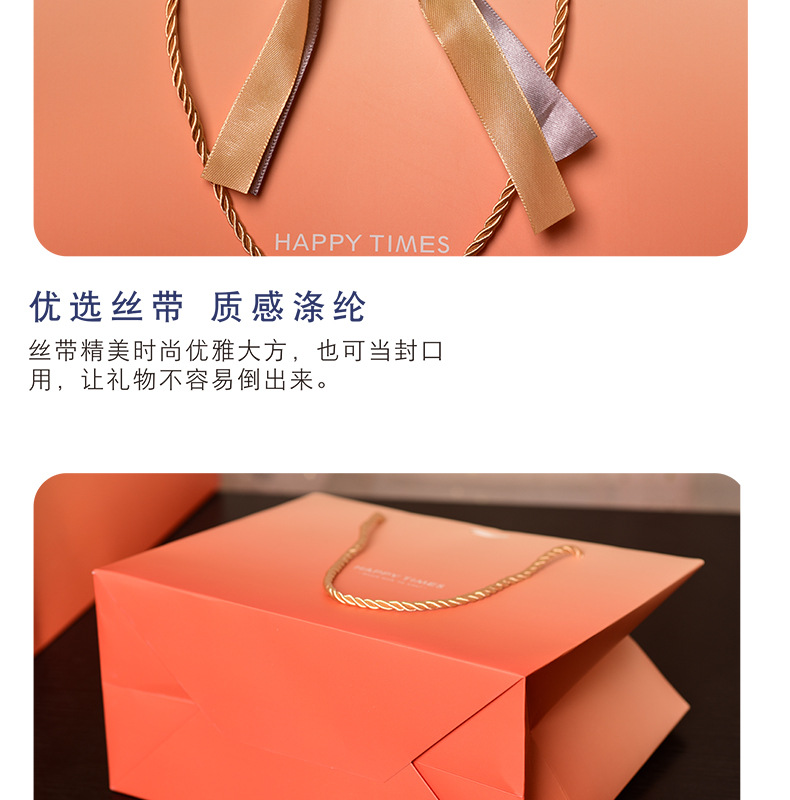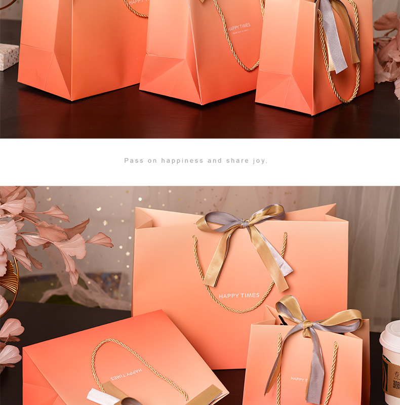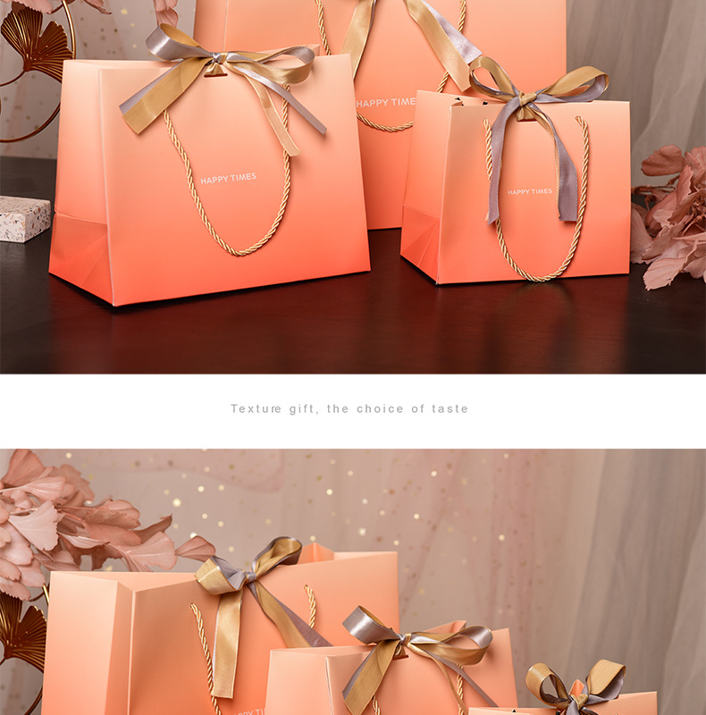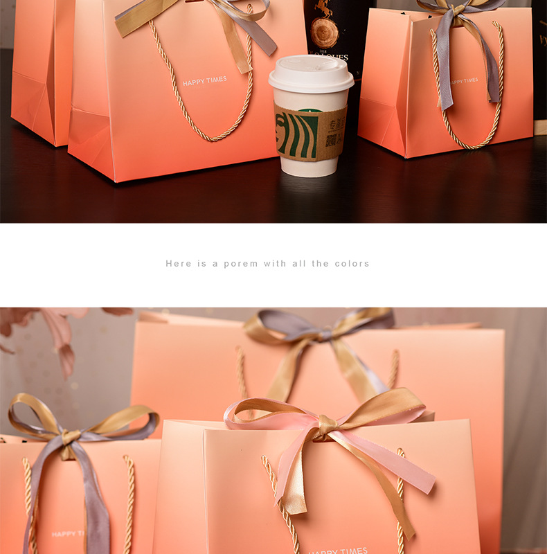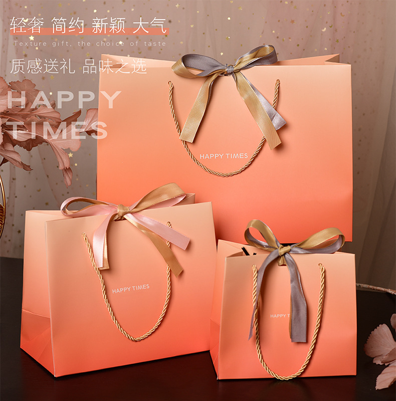 新しいシンプルなギフトバッグ、暖色のハンドバッグ、リボン付きギフト包装袋、ロゴを印刷できるギフトバッグ