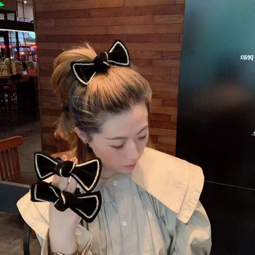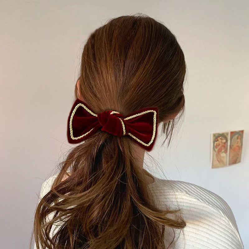 ベルベットリボンヘアピン女性のための 2025 冬の新しいヘアピン後頭部半分結び目ヘアスプリングクリップハイエンド帽子
