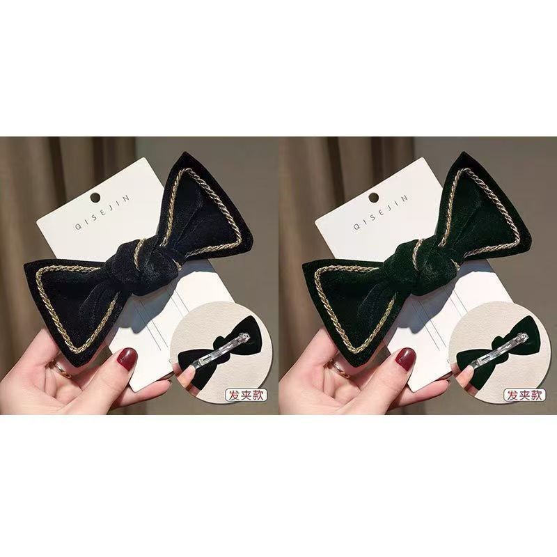 ベルベットゴールドエッジリボンヘアピン:ブラック,ベルベットゴールドエッジリボンヘアピン:グリーン