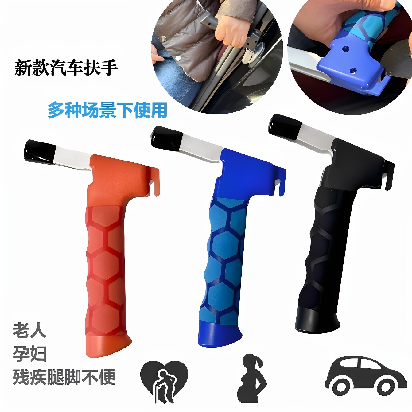 国境を越えるための車のドアハンドル安全ハンマー、懐中電灯付き、高齢者向け補助ドアハンドル、車から降りるための脱出ハンマー、緊急ハンマー