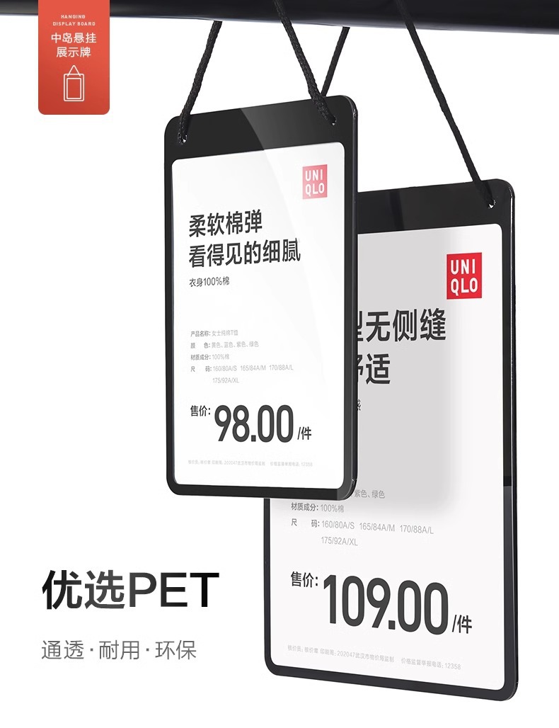 A4衣料品価格プロモーションディスプレイカード、中島棚、大型ラベル、ユニバーサルサインディスプレイ、多面吊り下げカード、商標