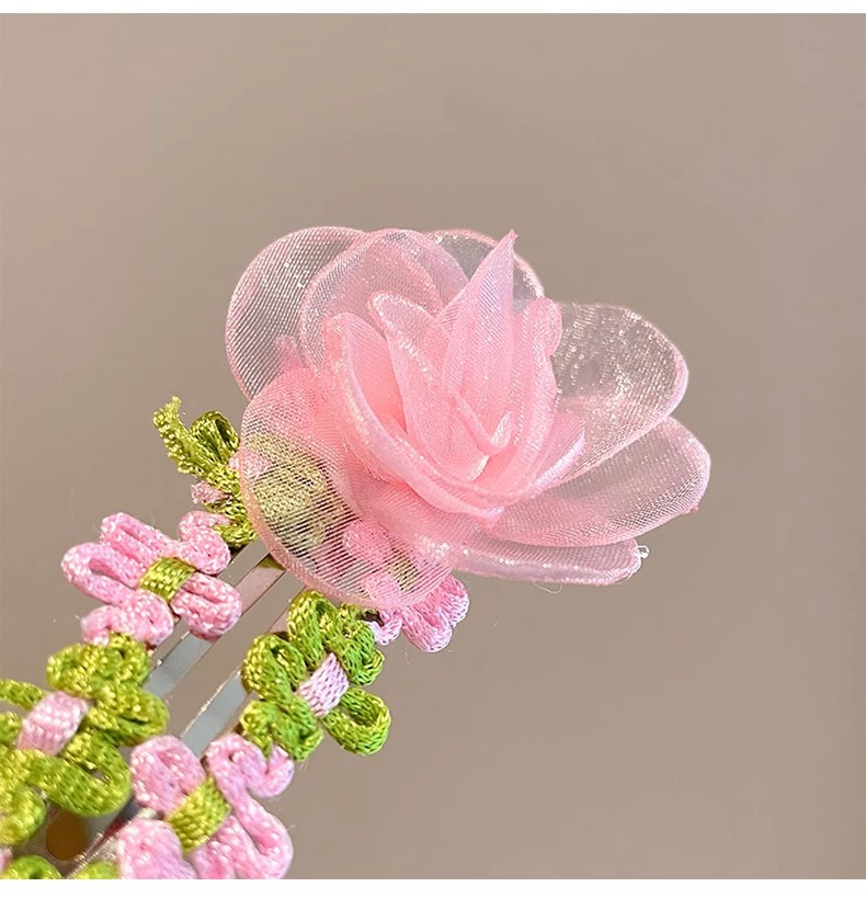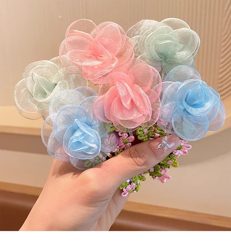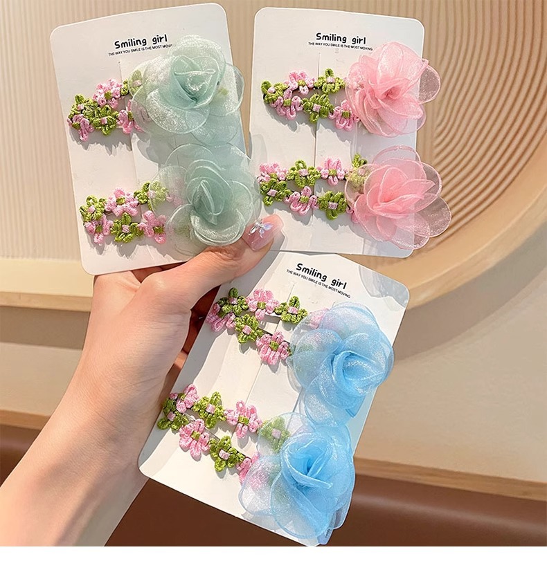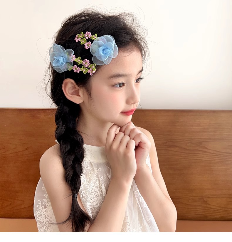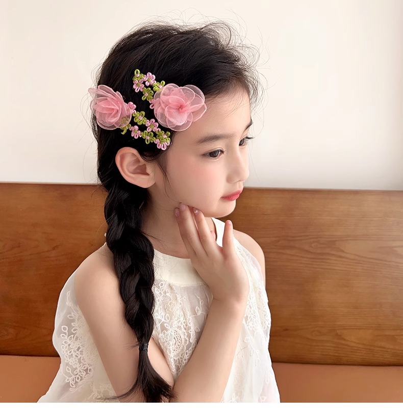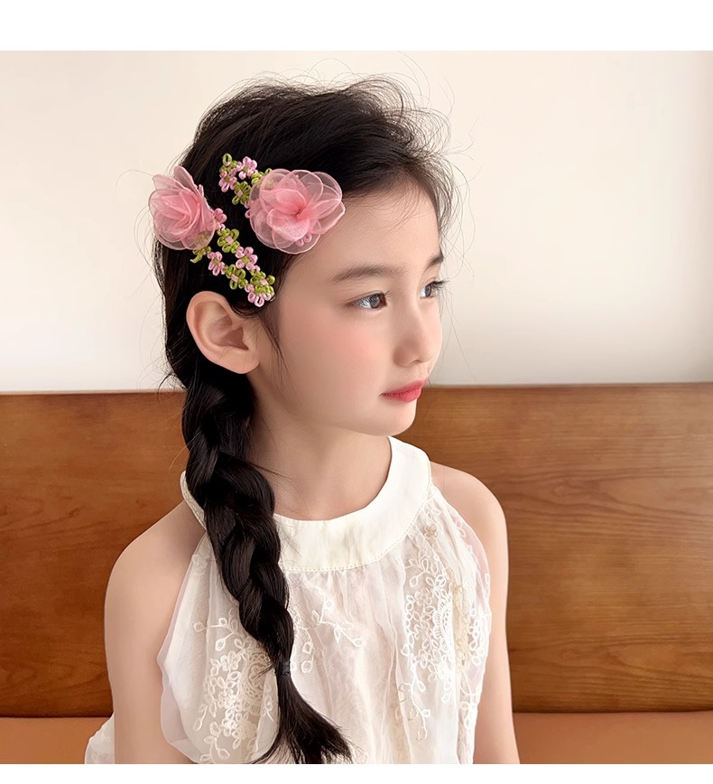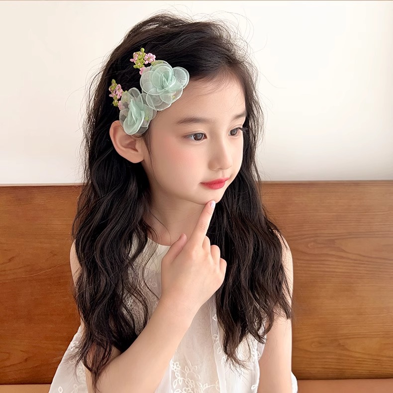 初夏のスーパーフェアリーメッシュフラワーヘアクリップ、甘い女の子の花、田園風の雰囲気、前髪クリップ、ガーリーハートサイドクリップ
