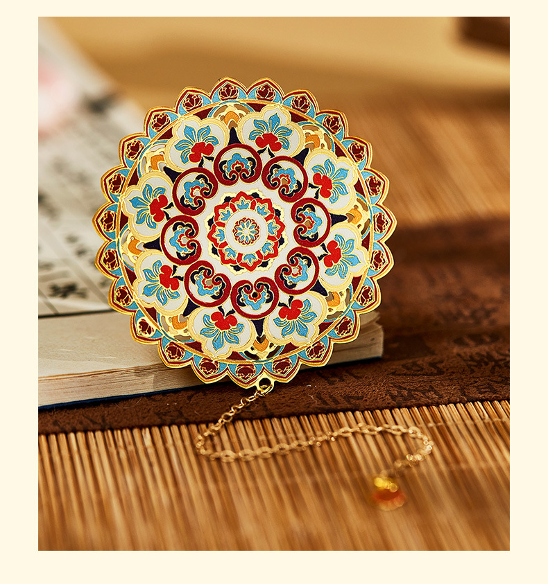 扇形の透かし彫りのしおりの国潮の古風の高い顔の値はしおりの故宮の文の記念品の高級で精巧なしおりに属します。