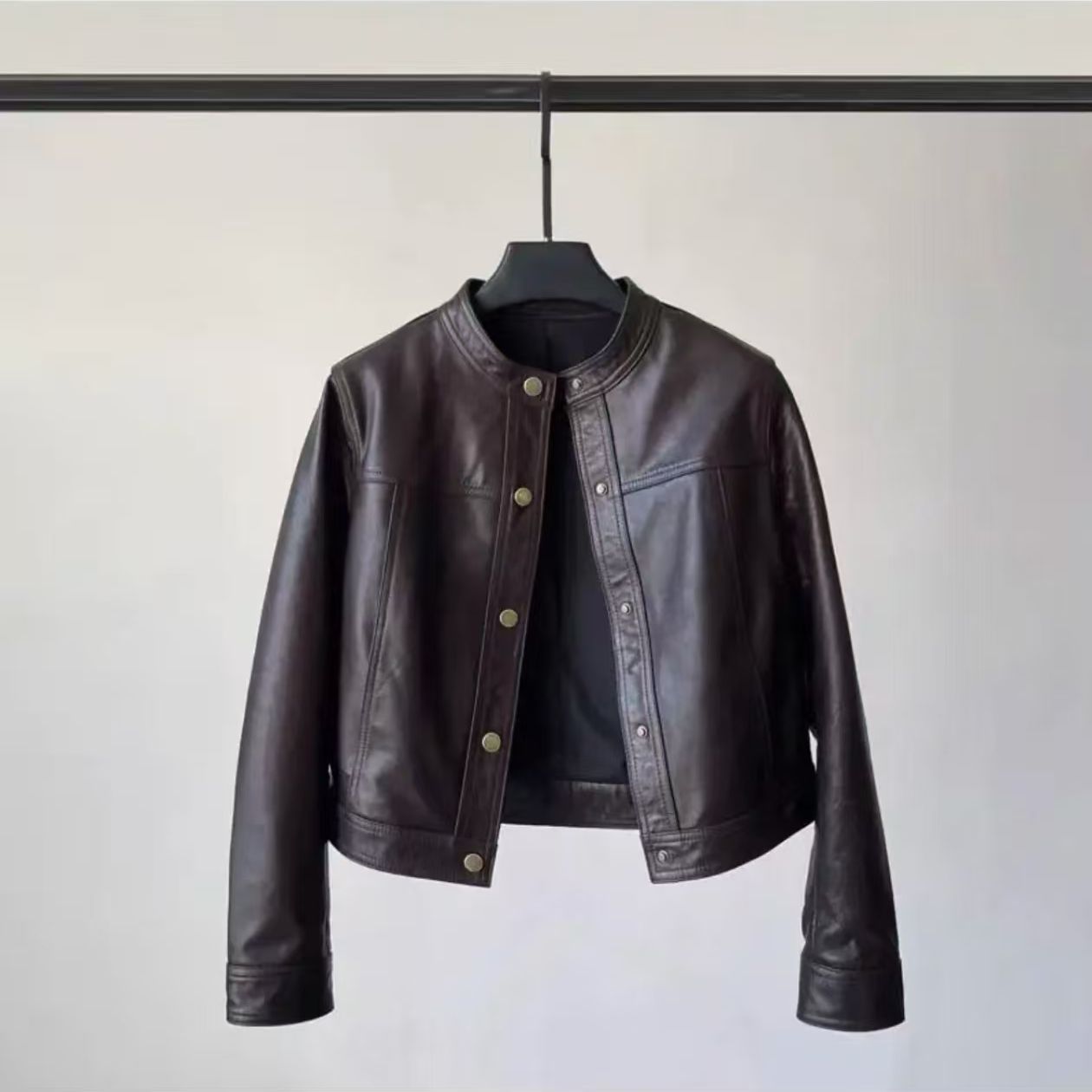 海宁春秋2025新款皮衣短款皮夹克机车小个子立领外套黑色雪尼尔
