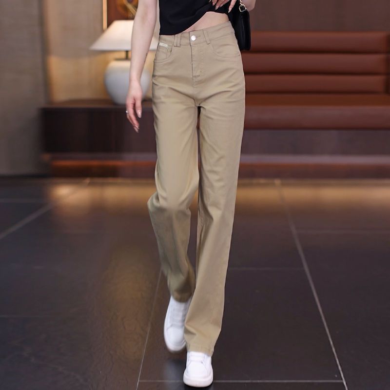 卡其色裤子女2025新款春秋冬棉布牛仔裤休闲窄版女裤直筒裤牛仔棉