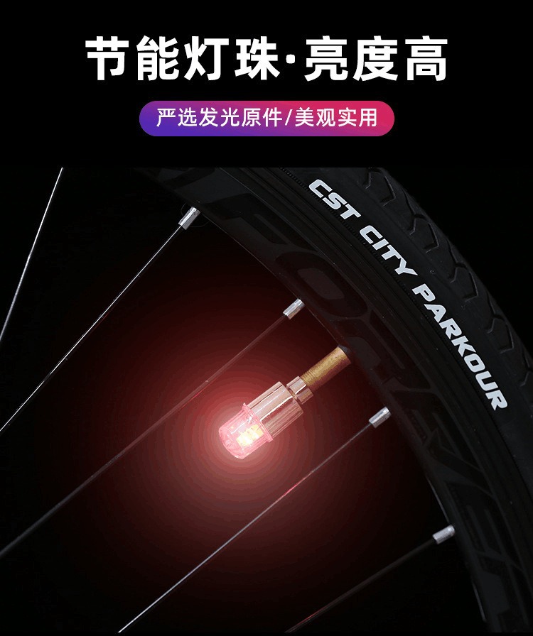 自行车气门嘴灯轮胎气门芯灯山地车风火轮儿童单车七彩警示氛围灯