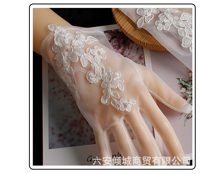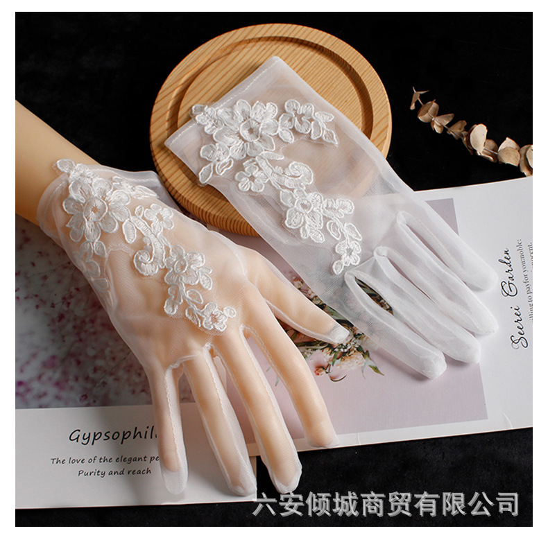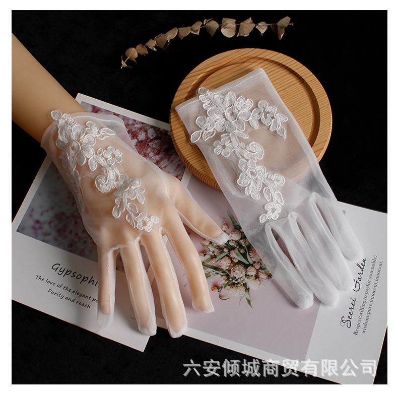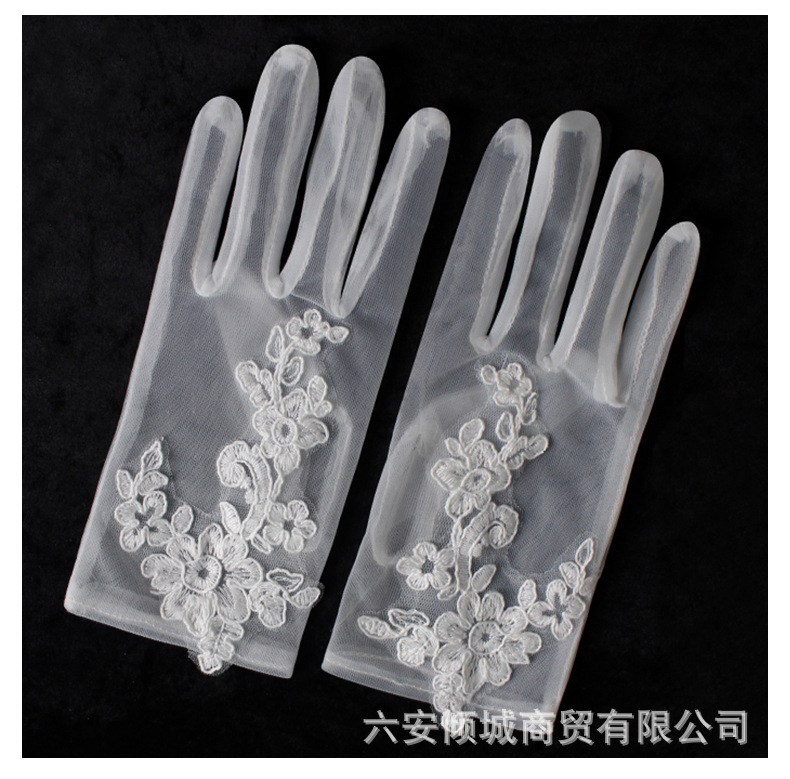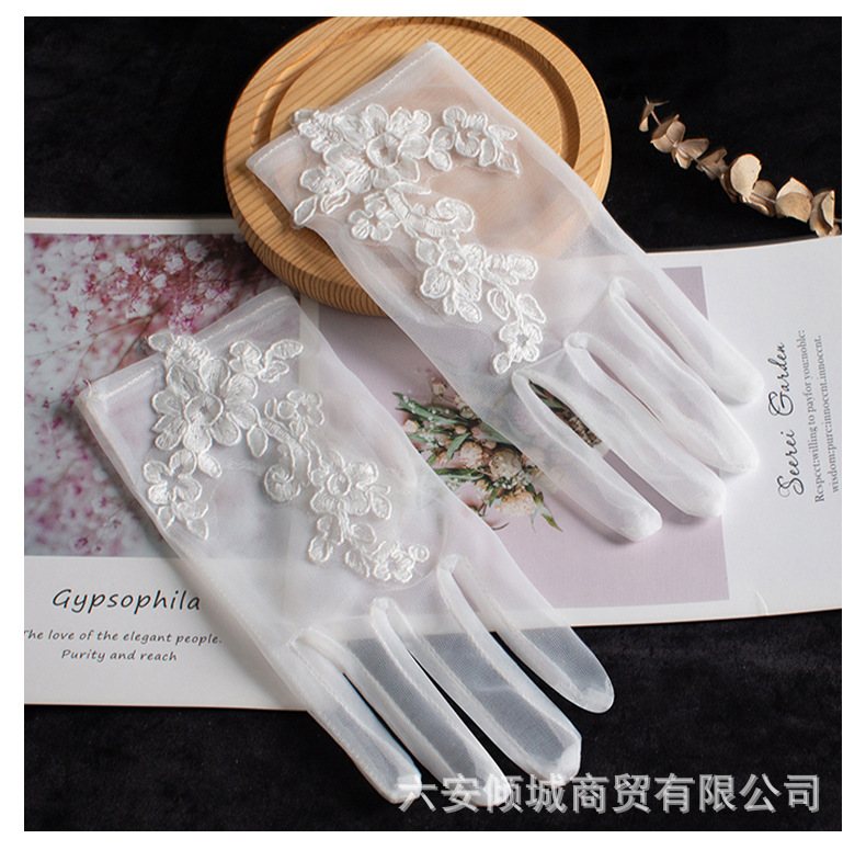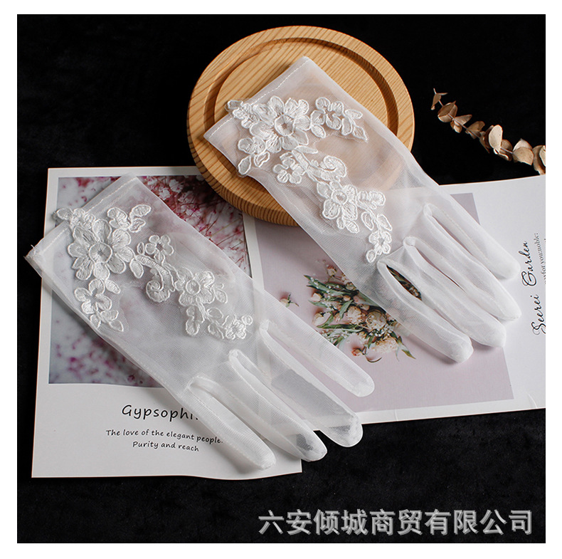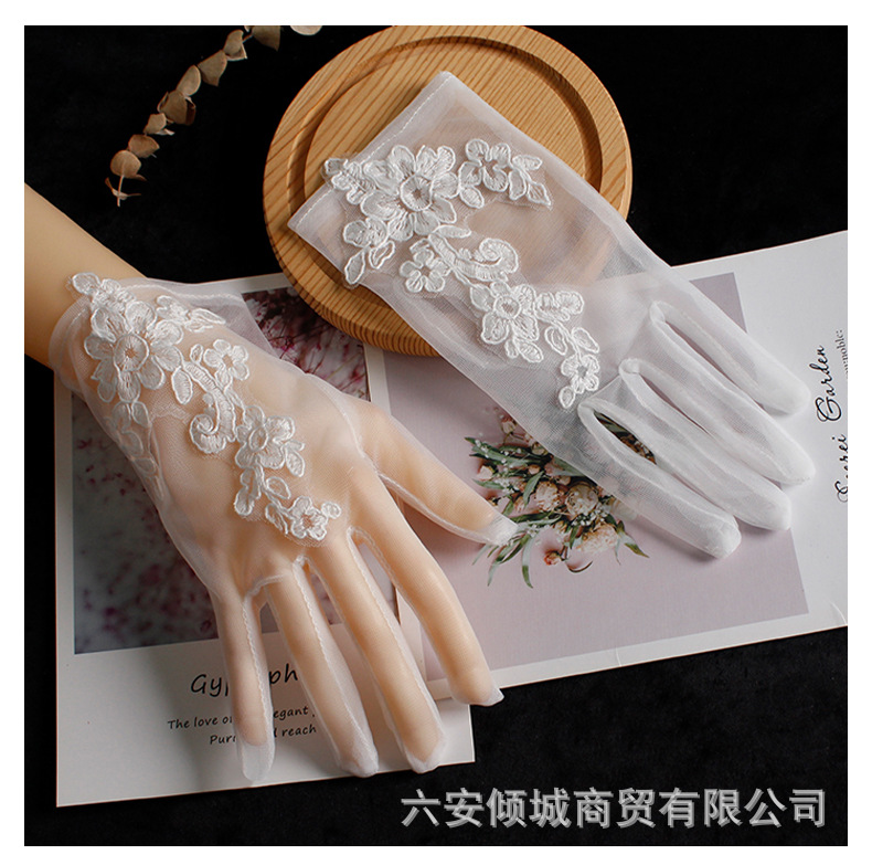 ウェディング手袋女性韓国式透明薄網糸ショートカラー白黒紅粉有包指春夏秋ドレス手袋