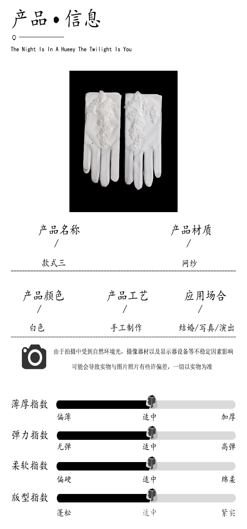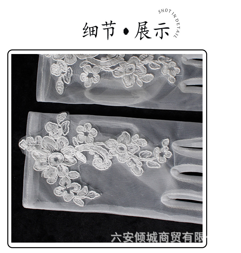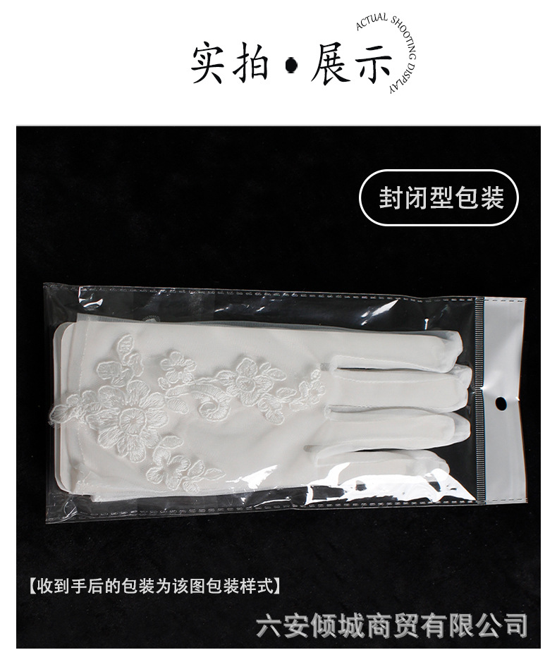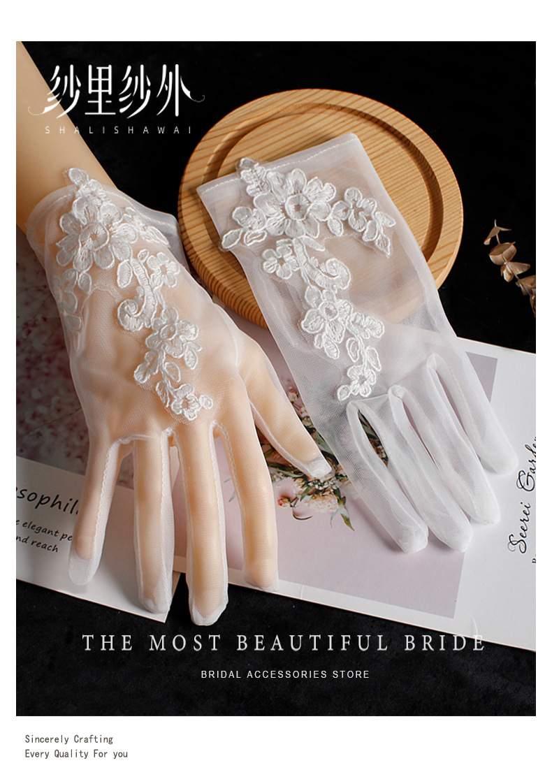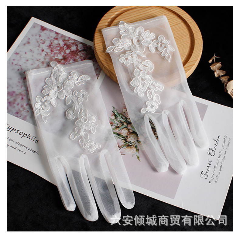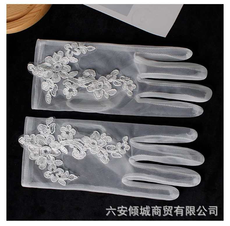 ウェディング手袋女性韓国式透明薄網糸ショートカラー白黒紅粉有包指春夏秋ドレス手袋