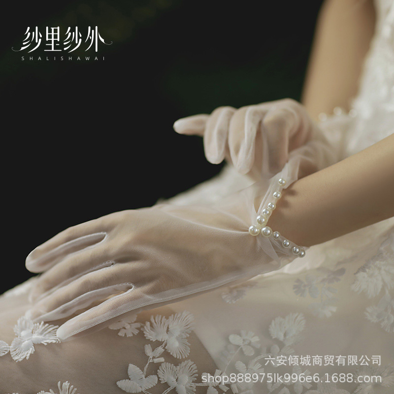 韓国の新しいスタイルのチュールパールスタイルのウェディンググローブショートホワイトシンプルな旅行写真スタジオフィンガー卸売