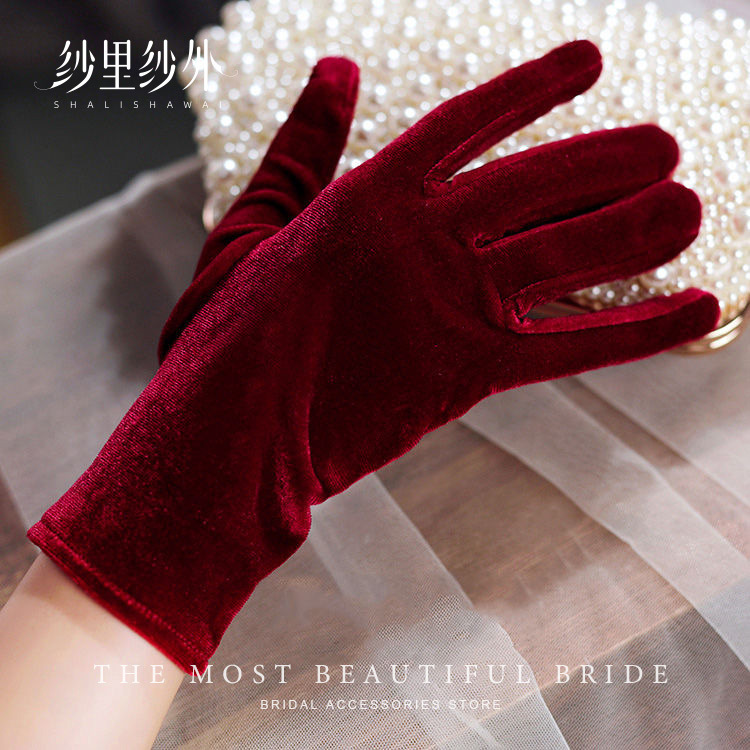 赫本風のベルベットのワインの赤い手袋の新婦の敬酒服の結婚するウェディングドレスの秀禾の結婚式のサテンのフランス式の短い金