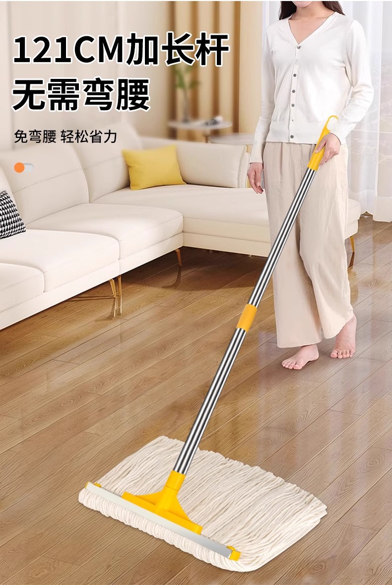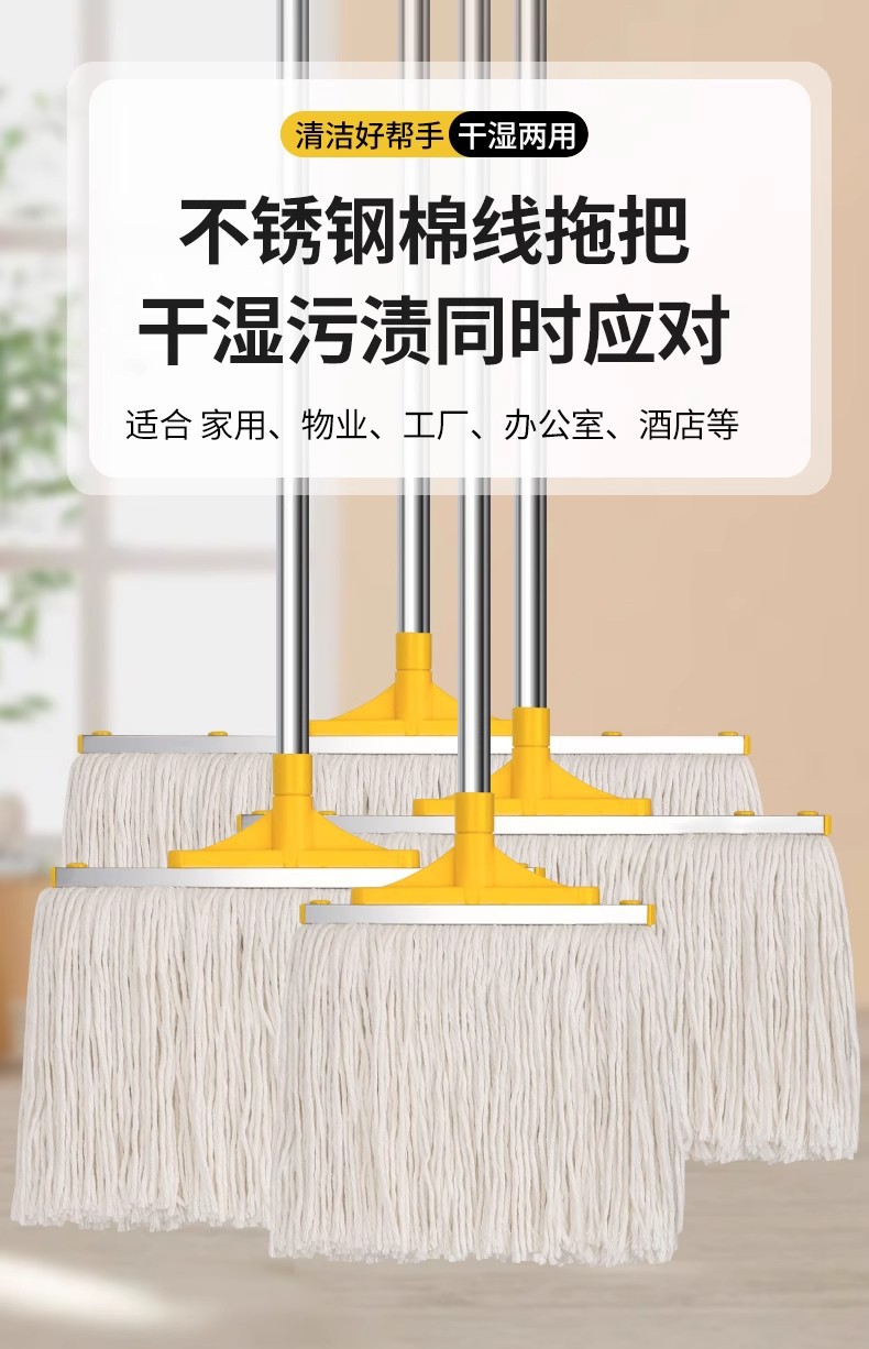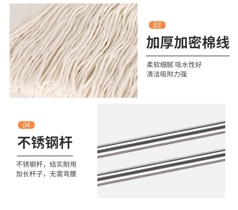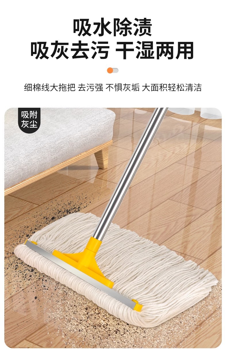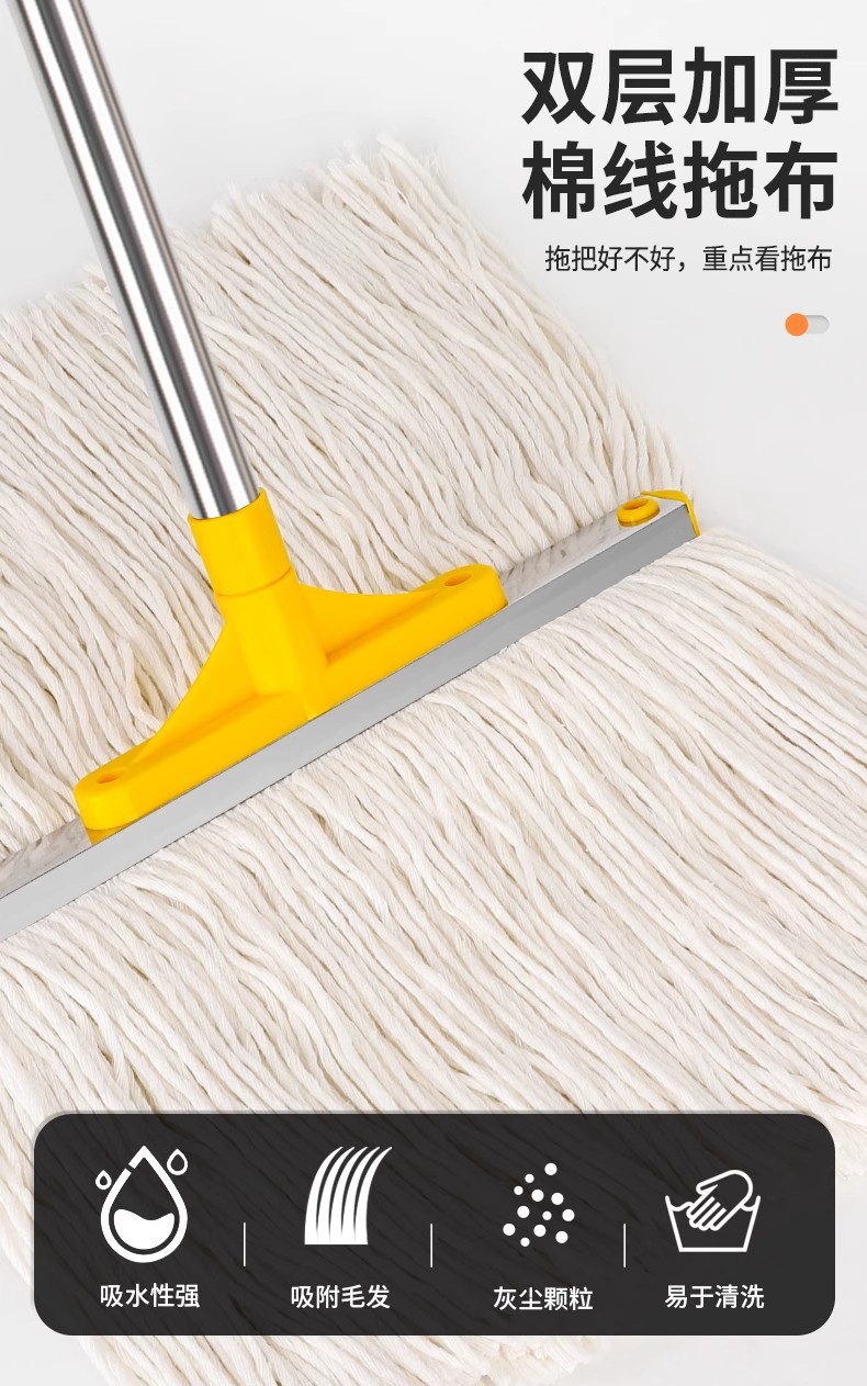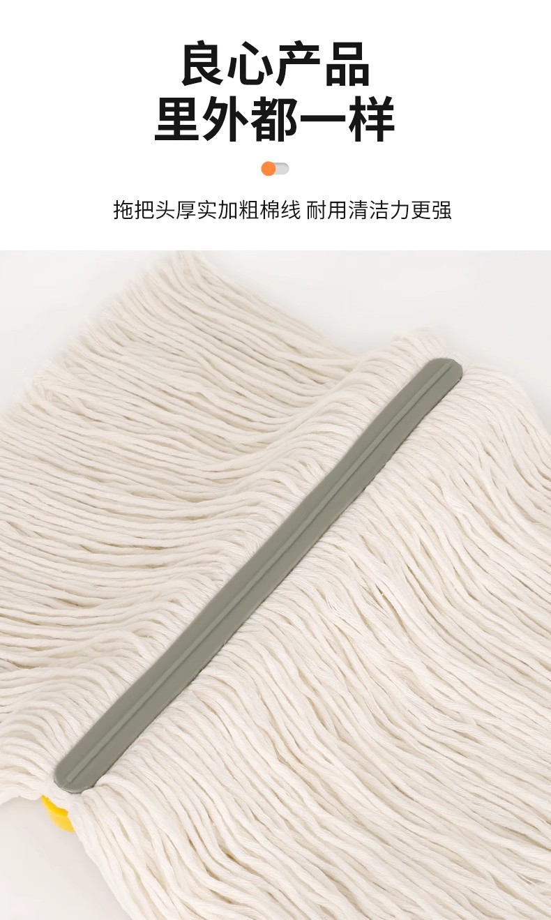 专供跨境商用棉纱拖可拆洗棉线墩布蜡拖把水拖配榨水车用立式地拖